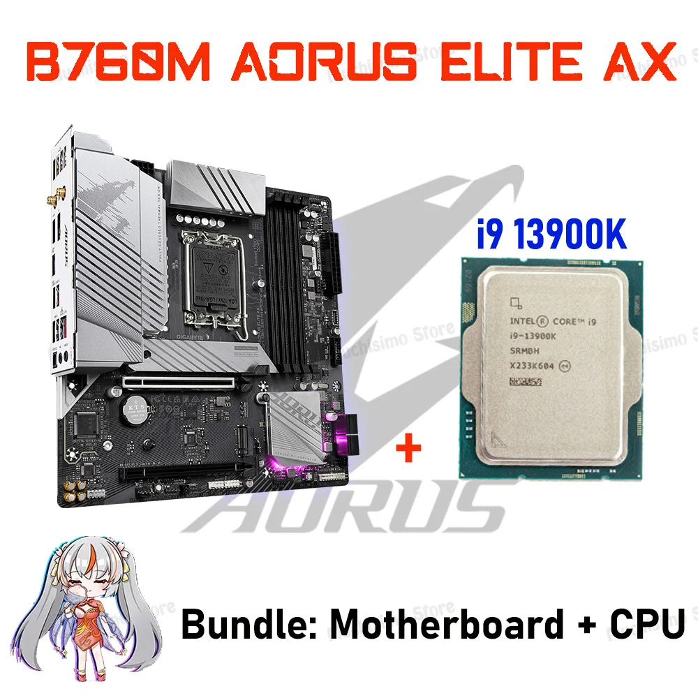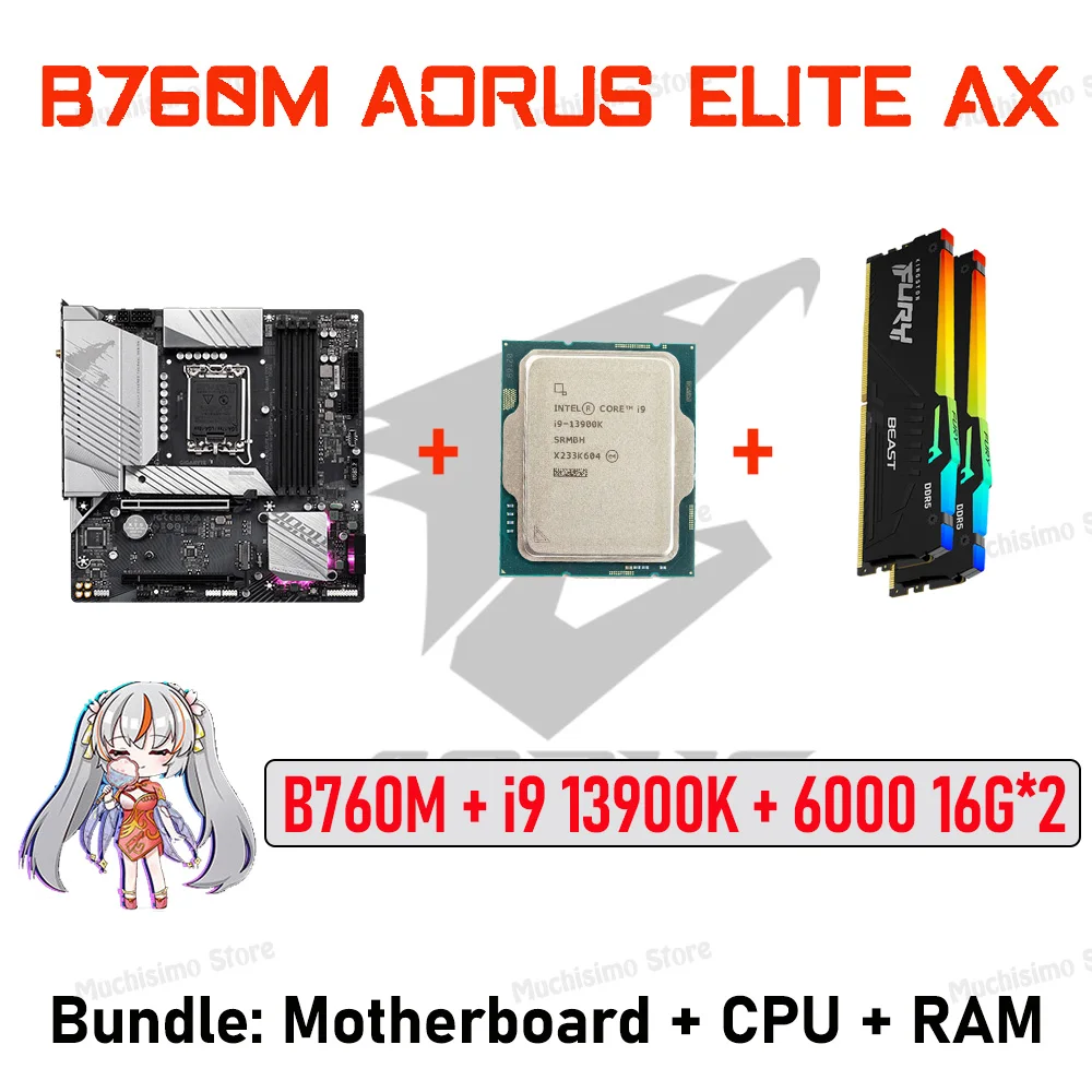 Gigabyte B760M Aorus ELITE B760 placa base Combo Intel Core i9 13900K lga1700 Kit de procesador con Kingston DDR5 RAM 16GBx 2 2017 nuevo escritorio Intel B760 Gaming placa base traje Mirco-ATX nuevo
