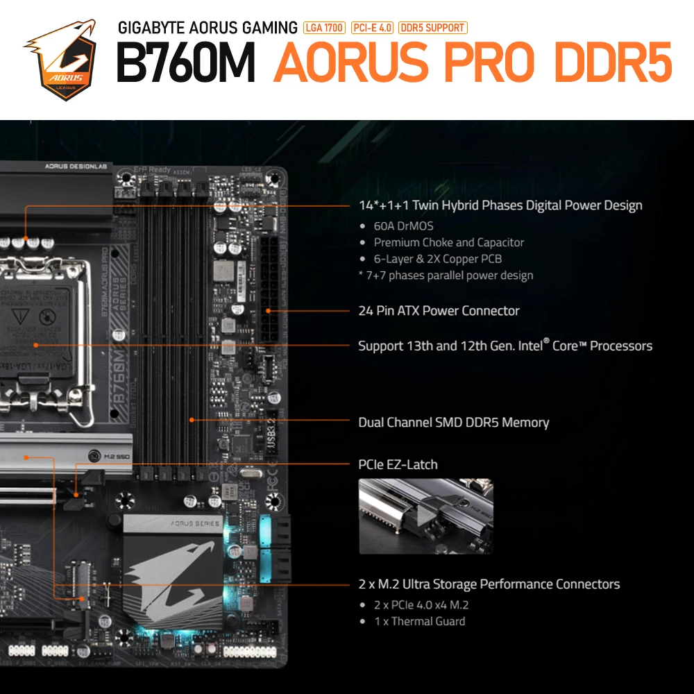 Traje 1-Placa base con CPU-B760M AORUS PRO DDR5 + i5-13600K