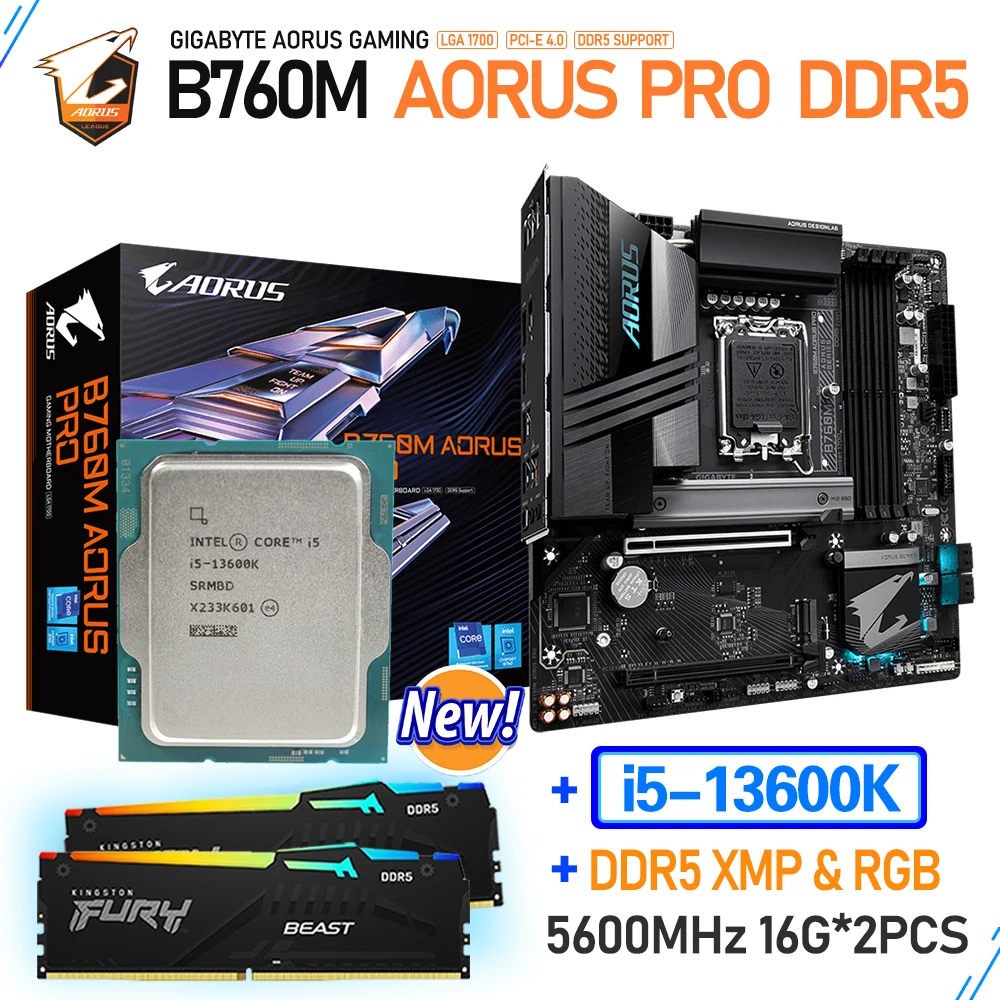 Traje 2-Placa Base + CPU + RAM-B760M AORUS PRO DDR5 + i5-13600K + 5600MHz 16GB x 2 piezas RGB XMP