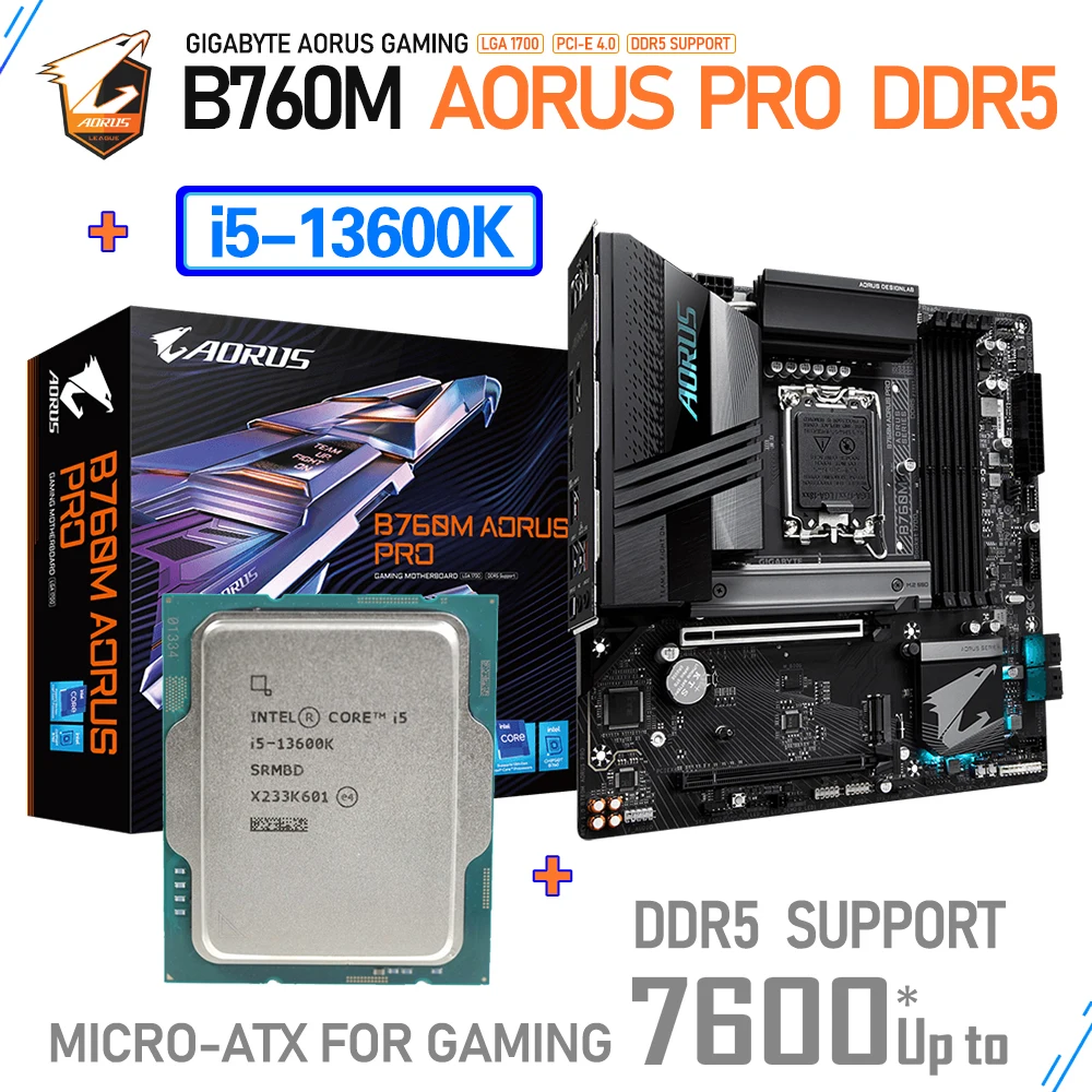 Comprar GIGABYTE-Conjunto de placa base B760M AORUS PRO DDR5, B760 con CPU Intel Core i5 13600K + 5600MHz 32GB de memoria RGB PCI-E 4,0, nuevo micro-atx