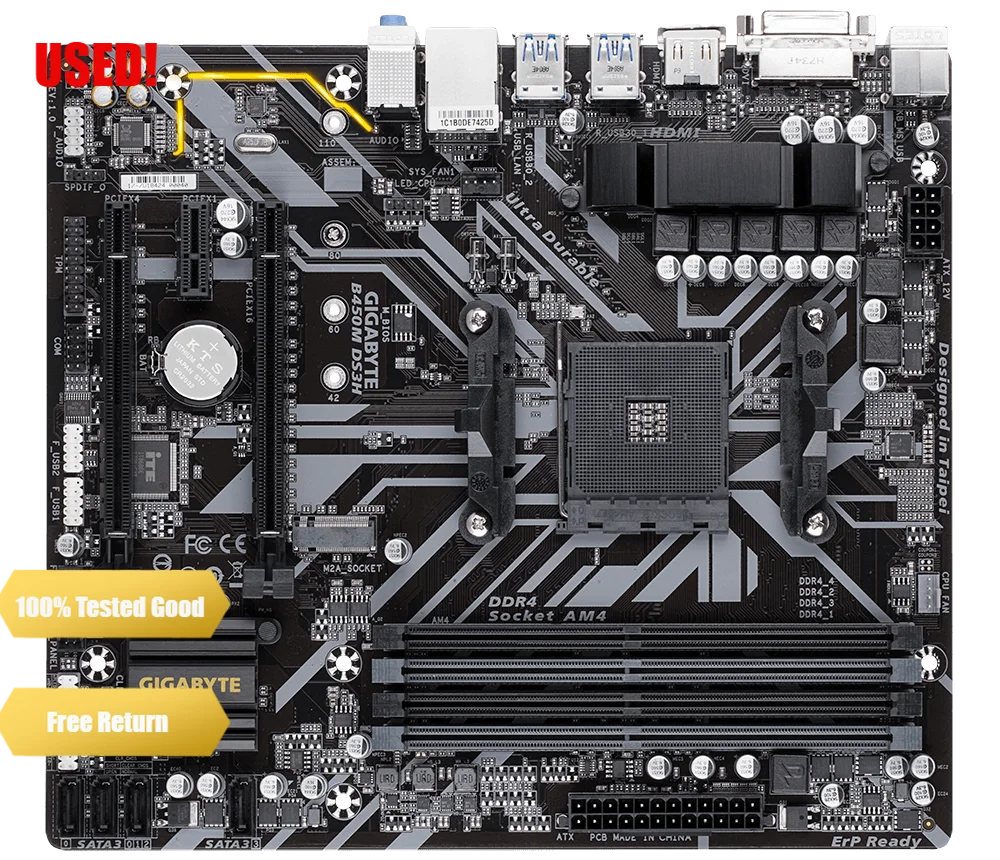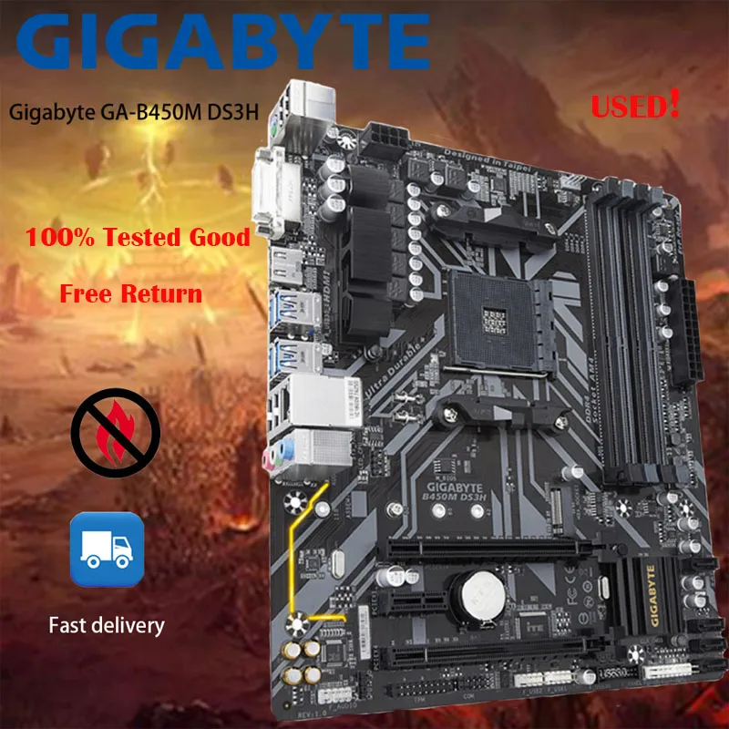 Comprar Gigabyte-GA-B450M DS3H de segunda mano para ordenador de escritorio, placa base para AMD AM4 Ryzen 3/5/7/9 1th.2th.3th.Athlon USB3.1 HDMI M.2 B450 micro-atx