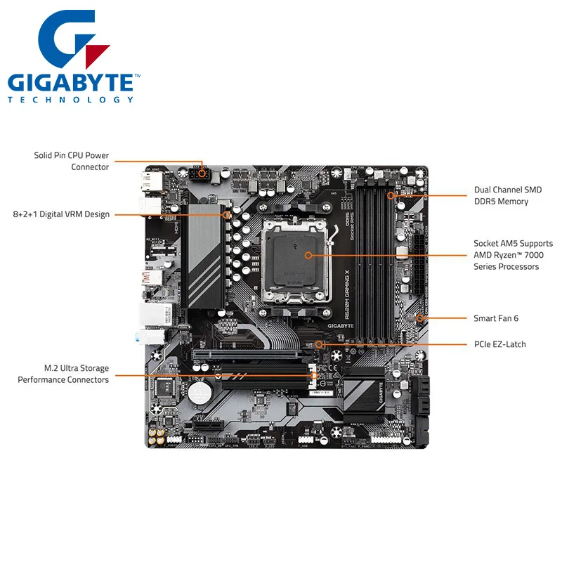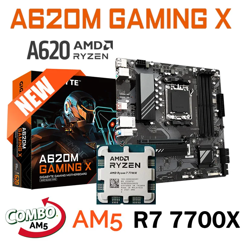 Placa base AMD A620 Socket AM5Gigabyte A620M GAMING X DDR5Placa base de escritorioCPU AMD Ryzen 7 7700XTraje 128GB PCI-E 4,0 NUEVOSin batería
