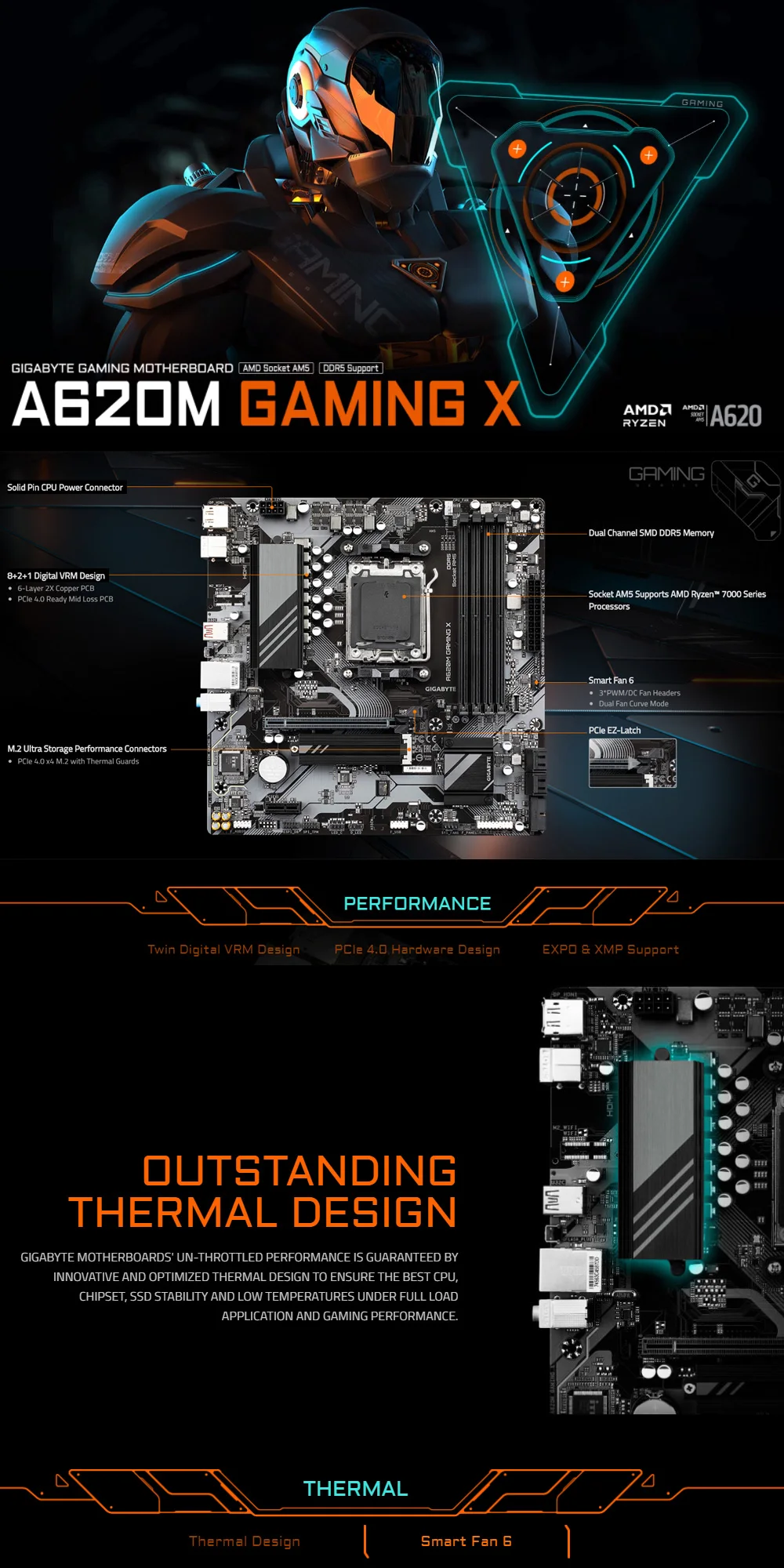 Comprar Gigabyte-placa base AMD A620 AM5 para ordenador de escritorio, placa base para GAMING X DDR5 con AMD Ryzen 7 7700X CPU, 128GB, PCI-E 4,0