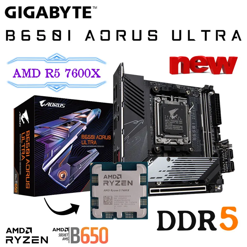 Comprar Gigabyte-placa base B650I AORUS ULTRA AM5, conjunto de CPU AMD Ryzen 5 7600X, DDR5, 128GB, 6400MHz, Memoria mini-itx, nueva