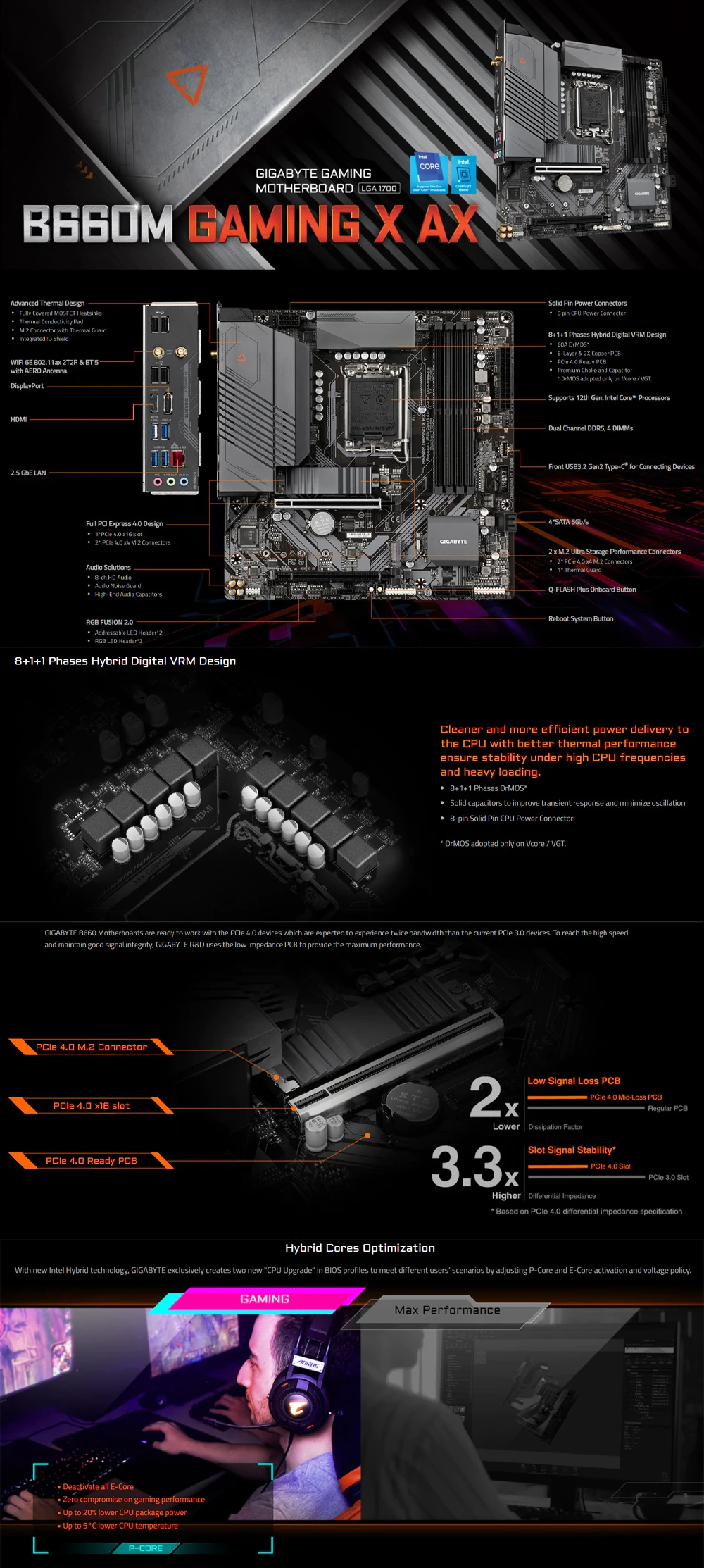Modelo de placa base:Gigabyte B660M GAMING X AX DDR5 (100% nuevo, sin batería)