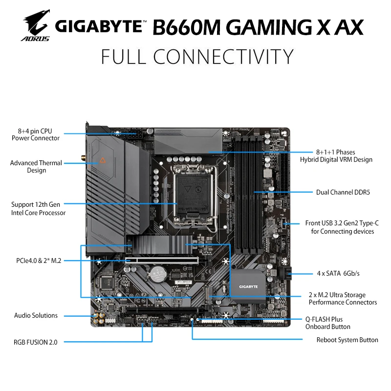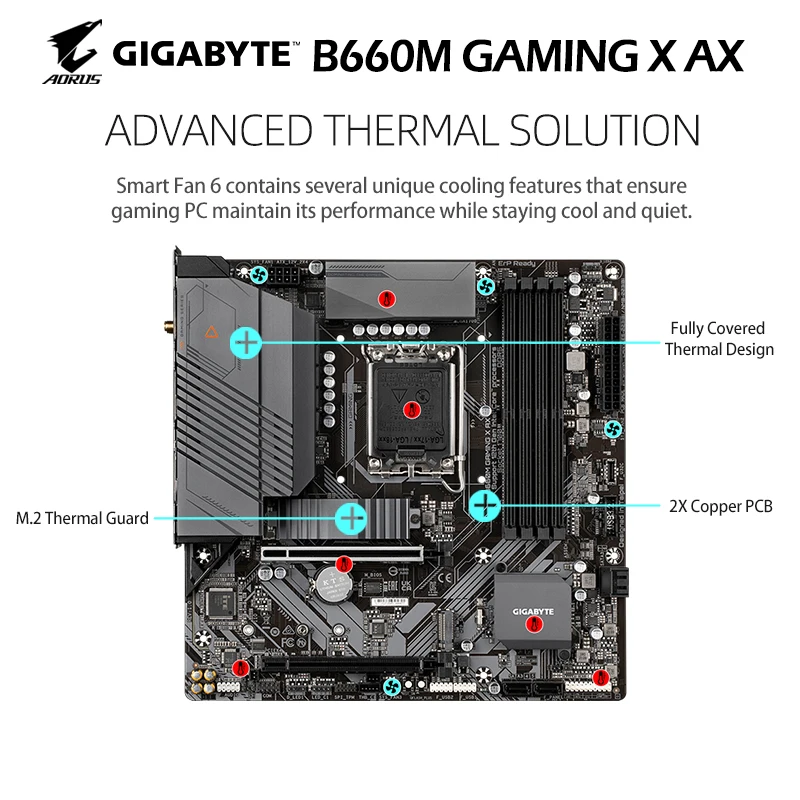 Modelo de placa base:Gigabyte B660M GAMING X AX DDR5 (100% nuevo, sin batería)