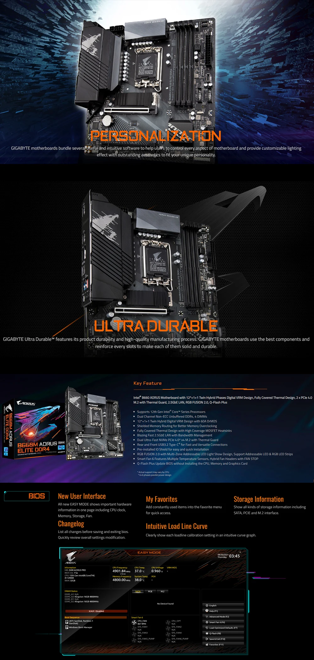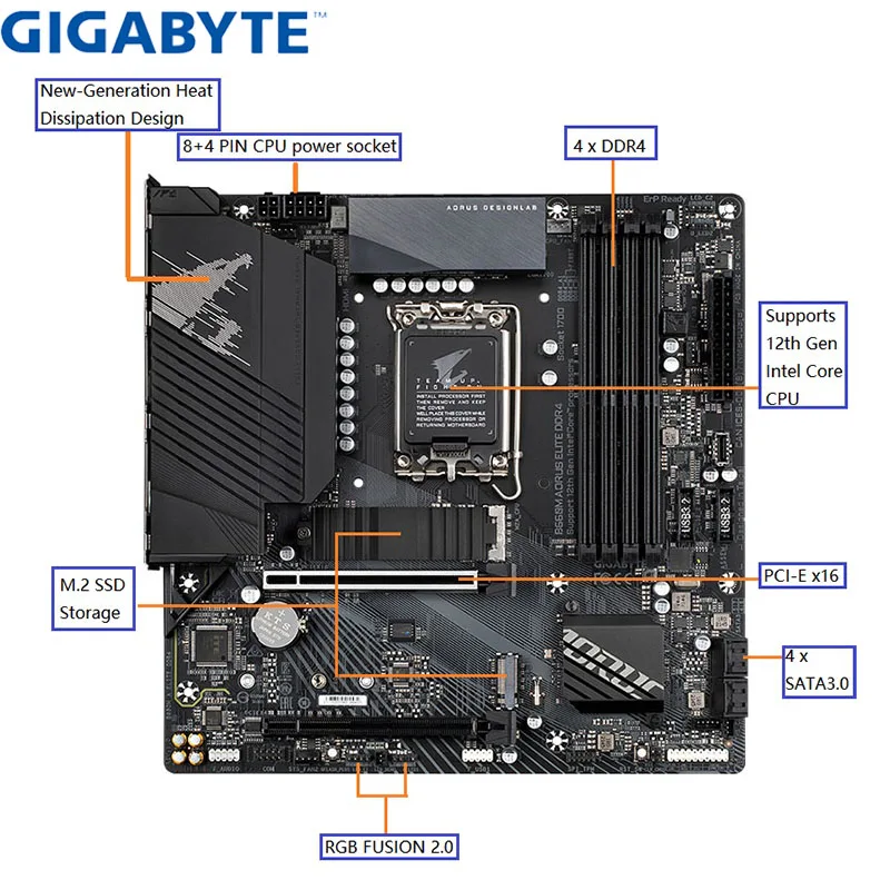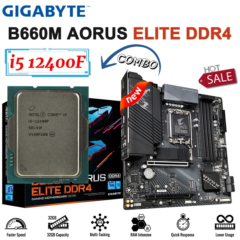 Comprar Gigabyte-placa base B660M AORUS ELITE DDR4 LGA1700 Combo + 12th Intel Core i5 12400F CPU 128GB pci-e 4,0 M.2, Nueva
