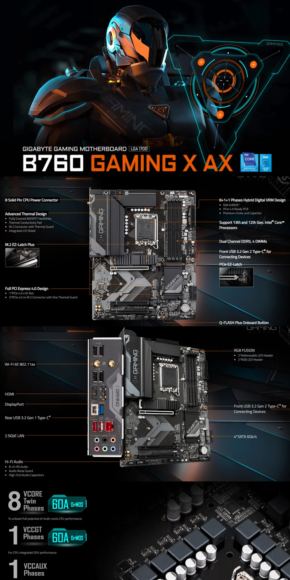 Placa base LGA 1700 B760 GigabyteB760 GAMING X AX BLUETOOTH 5,2 2.5GbE LANPlaca base B760 DDR5 7600MHz M.2 128GB Overlocking 2.5GbE LAN Wi-Fi 6E AX211 PCI Express x16 compatible con Intel 12th Gen LGA1700 compatible con Intel 12th 13i3 i5 i9(13600K 13600KF 13700K 13700KF 13900K 13900KF)Reloj ATX