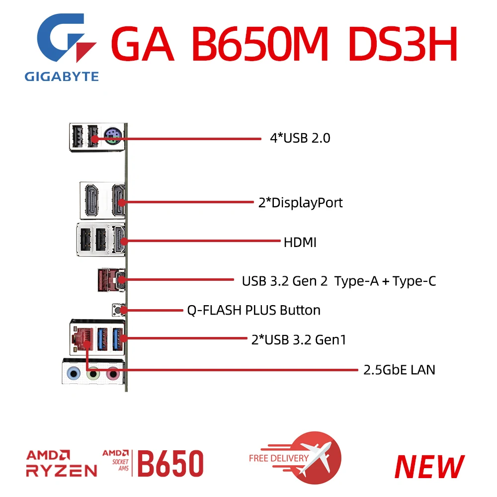 GiGabyte B650M DS3H Placa base Socket AM5 (AMD Ryzen™Procesador de escritorio serie 7000) procesador de CPU Ryzen 5 7600X R7 7700X R9 7900X 7950X Asgard memoria RAM de la marca Kingston FURY Beast DDR5 8GB 16GB 32GB 4800 5600 6000 MHz Dragon RTX 2060 RTX 3060 TI Ryzen 5 5600 5800x3d ASROCK B650M PG Riptide Micro-ATX MSI MAG B650M MORTERO Placa base con WiFi AMD B650 DDR5 para ASUS TUF GAMING B650M PLUS, tarjeta madre micro-ATX B650 DDR5 MSI PRO, WiFi ROG STRIX, wifi, GIGABYTE B550M AORUS ELITE AMD B550 Socket AM4 ASUS, nuevo, TUF GAMING, WiFi II SOYO AMD X670 ASUS TUF GAMING X670E-PLUS ASROCK Nuevo X670E PG Relámpago