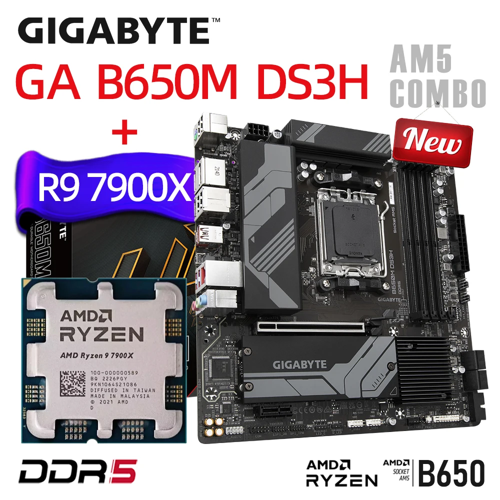 Comprar Gigabyte-placa base DDR5 AM5 Socket RYZEN CPU Set R9 7900X GA B650M DS3H, placa base PCIe 4,0 NVME M.2 B650, compatible con D5 6400MHz