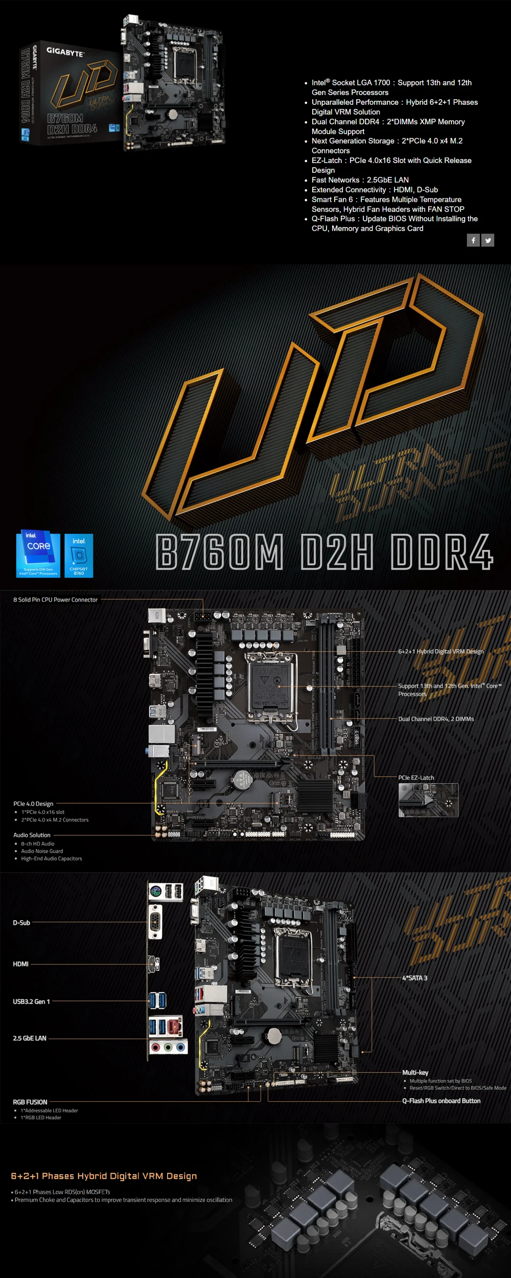 Comprar Gigabyte-placa base LGA 1700 B760M D2H DDR4, conjunto de CPU Intel i5 13400F, Combo de 128GB PCIe 4,0, Micro ATX, para escritorio de trabajo, nuevo