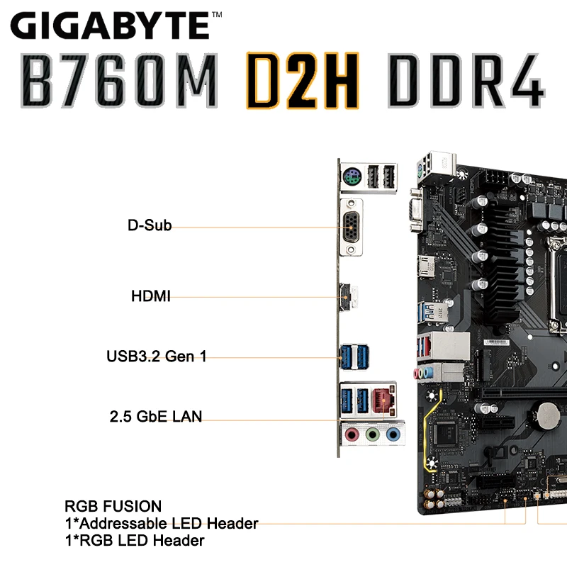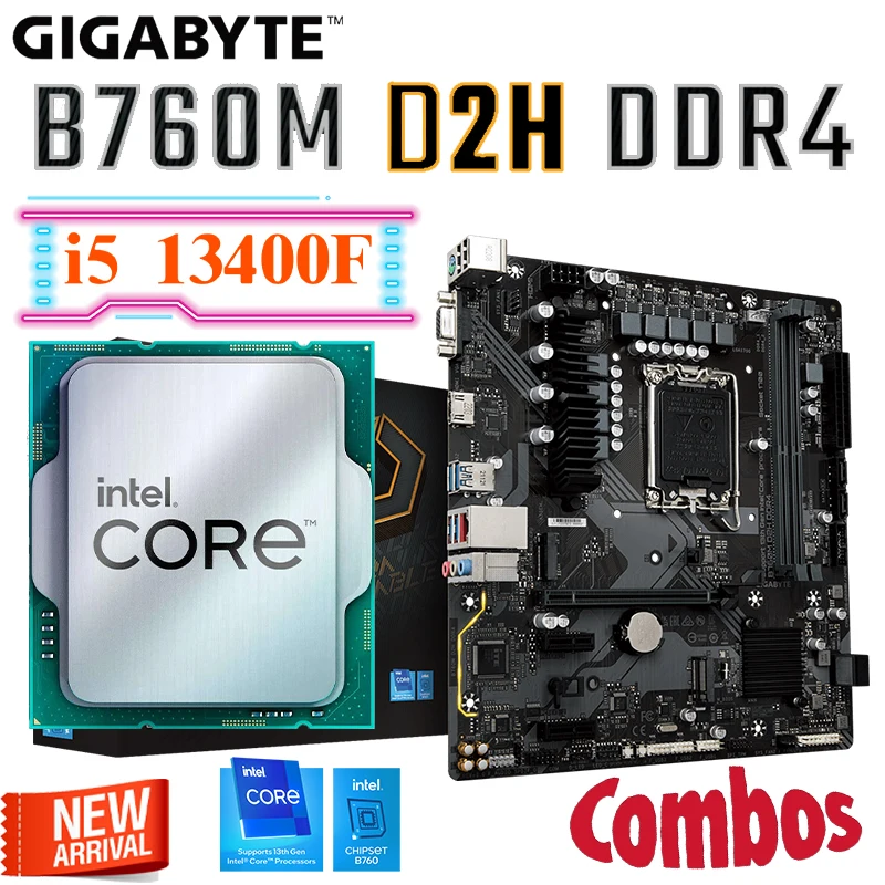 Comprar Gigabyte-placa base LGA 1700 B760M D2H DDR4, conjunto de CPU Intel i5 13400F, Combo de 128GB PCIe 4,0, Micro ATX, para escritorio de trabajo, nuevo