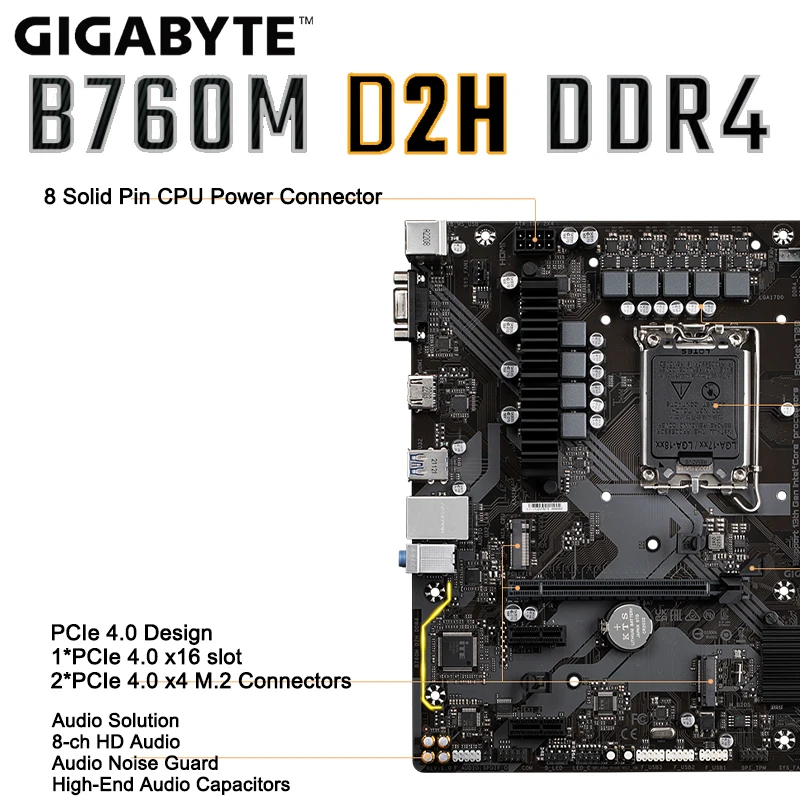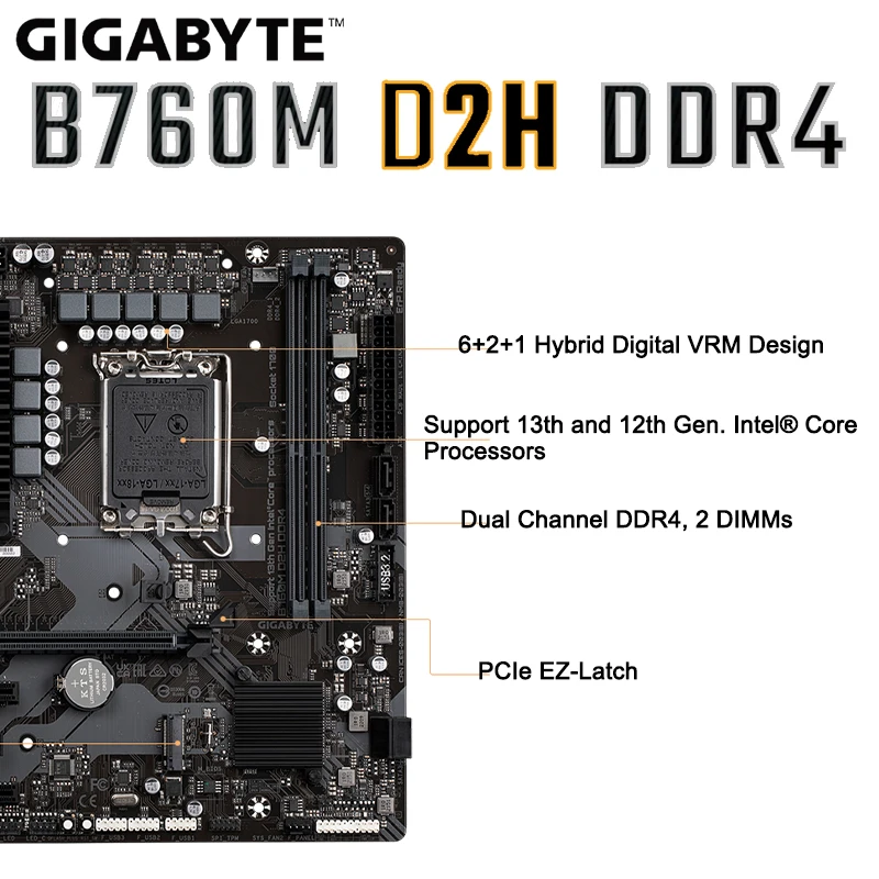 Modelo de placa base:B760M D2H DDR4(100% nuevo, sin batería)