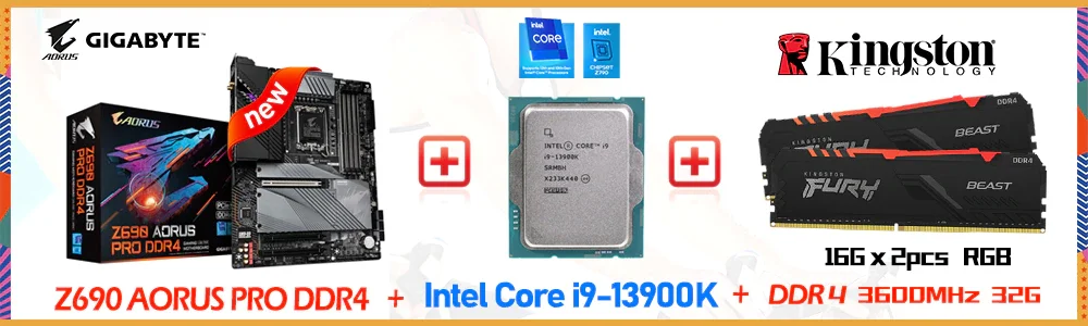 GiGabyte 2 Aorus Z690 DDr4 LGA 1700(Intel Core 12th y 13th) madre Gaming ATX el procesador y la Memoria kit Intel Core i9 13900K CPU con Kingston Fury bestia Memoria Ram DDR4 3600MHz 16GB x 2 piezas D4 32G RGB GPU (PCIe 5,0 DDR4... 4XM.2 ranuras 6XSATA WIFI 6 Intel 2,5 Gb LAN USB 3,2 Gen 2 tipo-C aura RGB Lighting), Cpu para juegos de escritorio I9-13900K i913950K juego preferido procesador 13. ª generación 9.