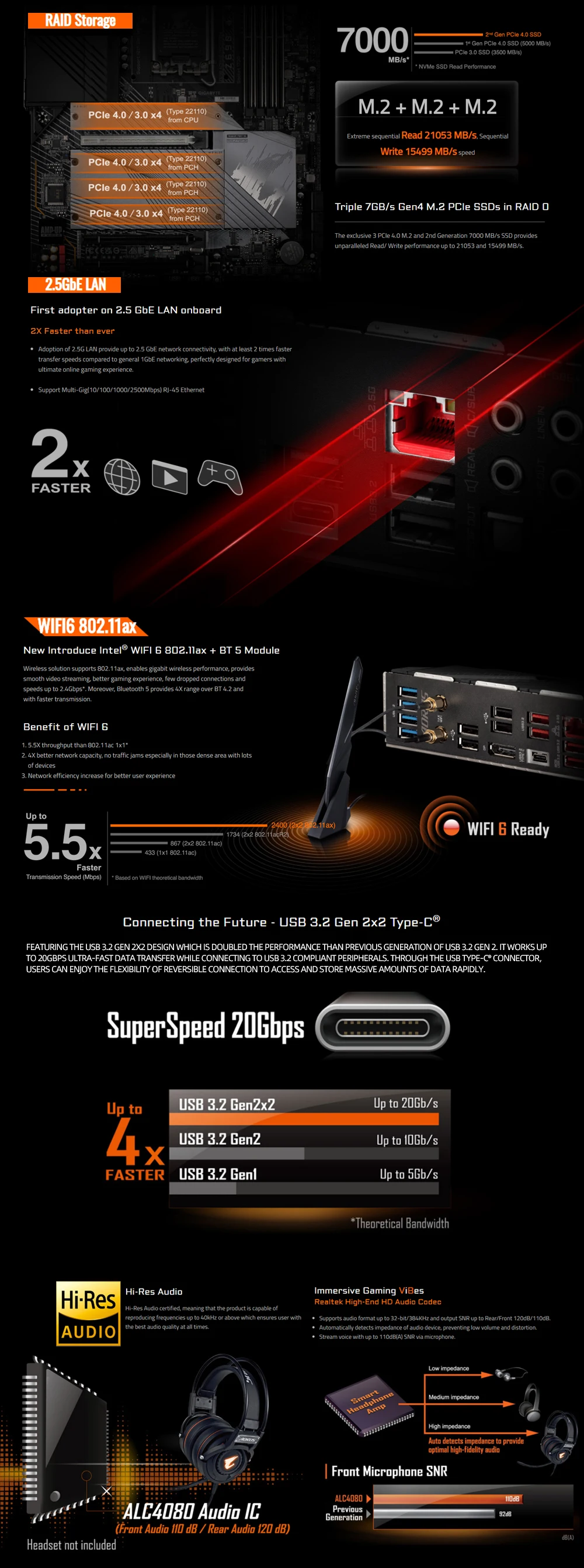 4x ultrarrápido NVMe PCIe 4,0 */3,0x4 M.2 con protector térmico agrandado