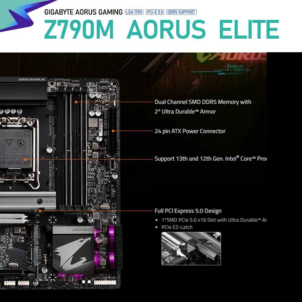 Comprar Gigabyte-placa base LGA 1700 Z790M AORUS ELITE DDR5, USB M.2 SATA, Micro ATX, placa base Intel 12th 13th Z790 PCIE 5,0 CrossFire