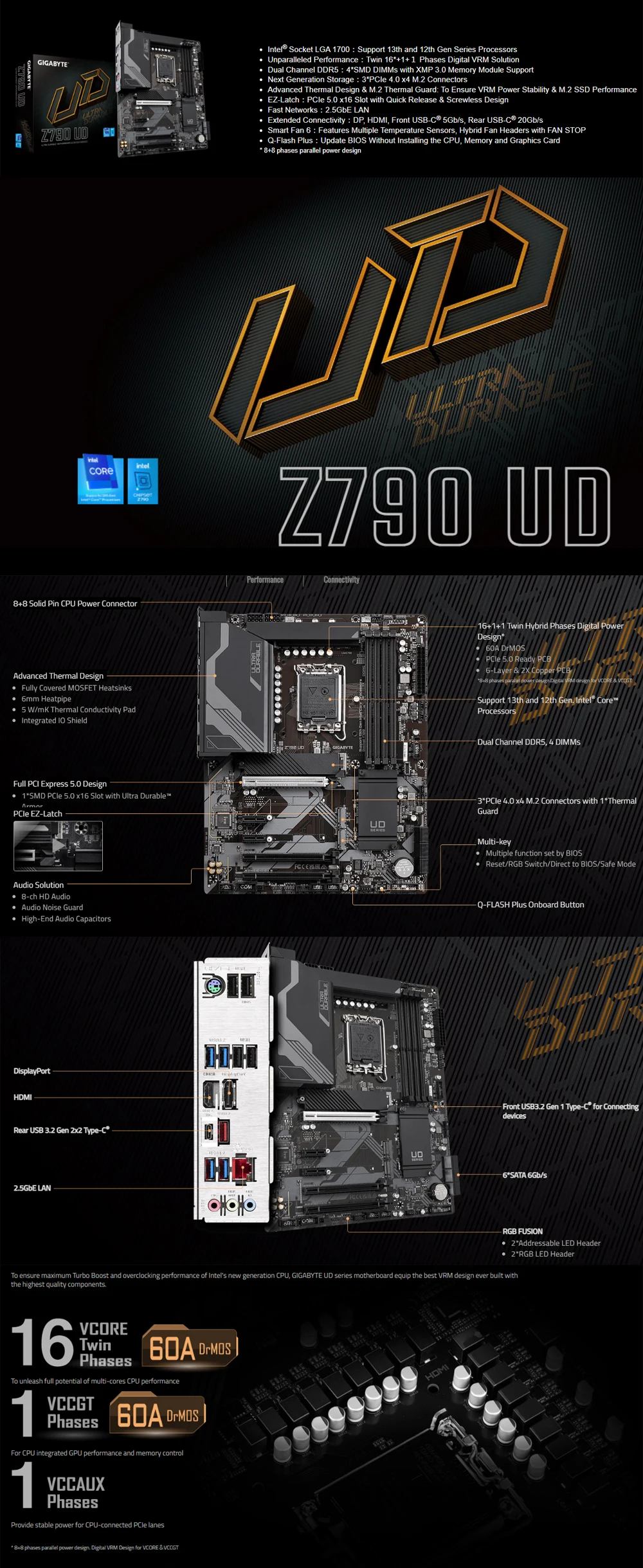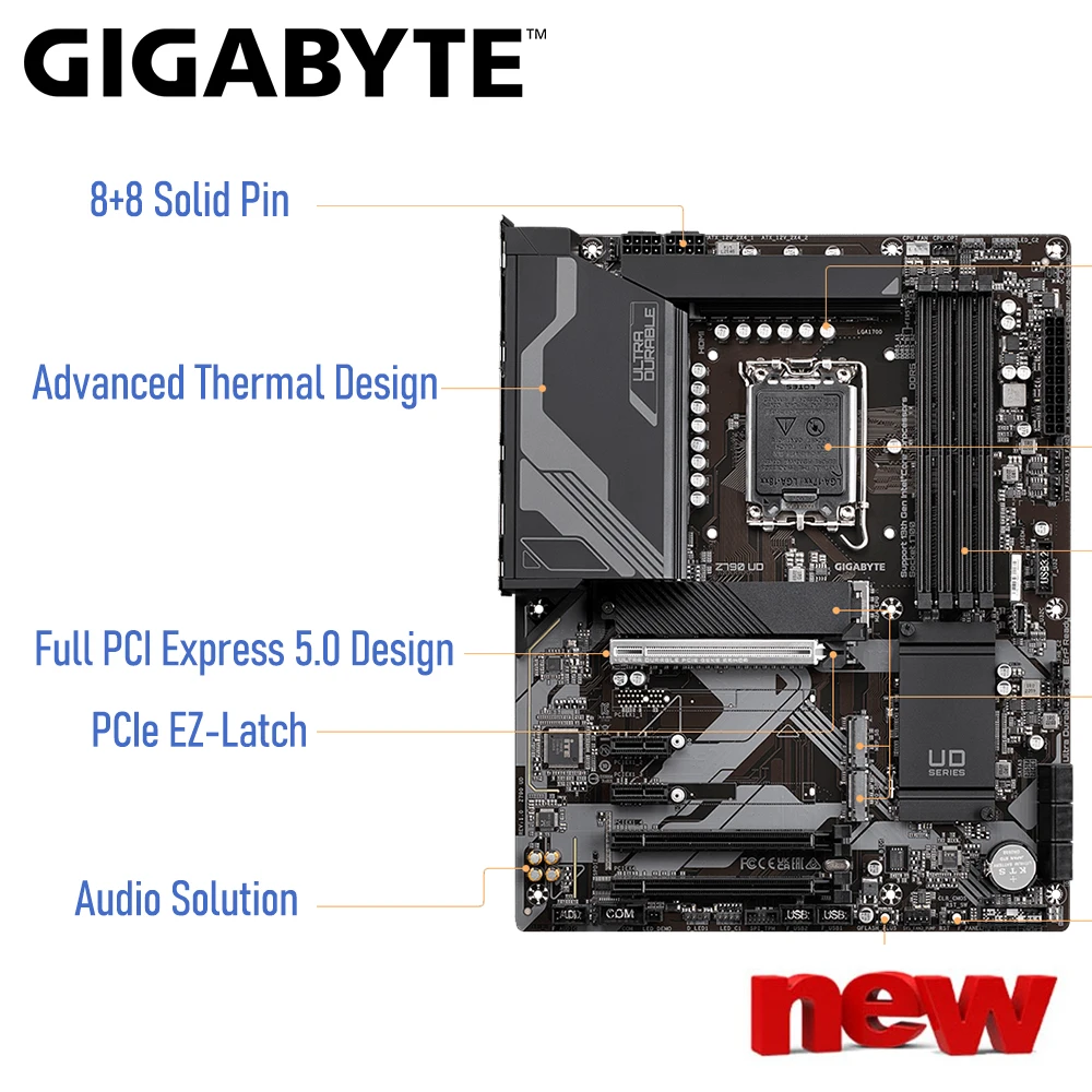 Gigabyte Z790 UD DDR5 placa base LGA1700 compatible con Intel 12th 13th Gen I3 i5 i7 i9 LGA 1700 procesador Intel Z790 placa base DDR5 7600MHz M.2 128GB 2.5GbE LAN PCIe EZ-Latch Multi-Key nuevo ATX