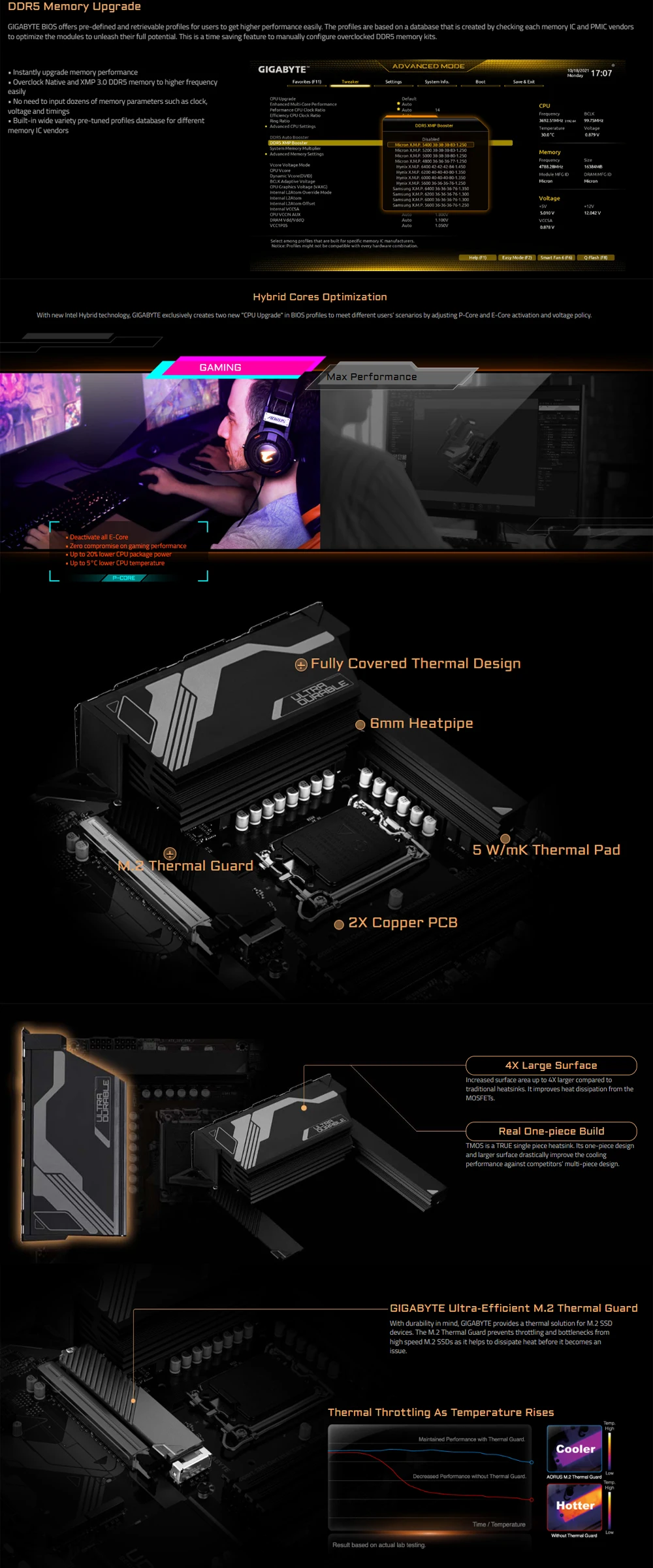 Diseño térmico avanzado y protección térmica M.2: para garantizar la estabilidad de la potencia VRM y el rendimiento del SSD M.2