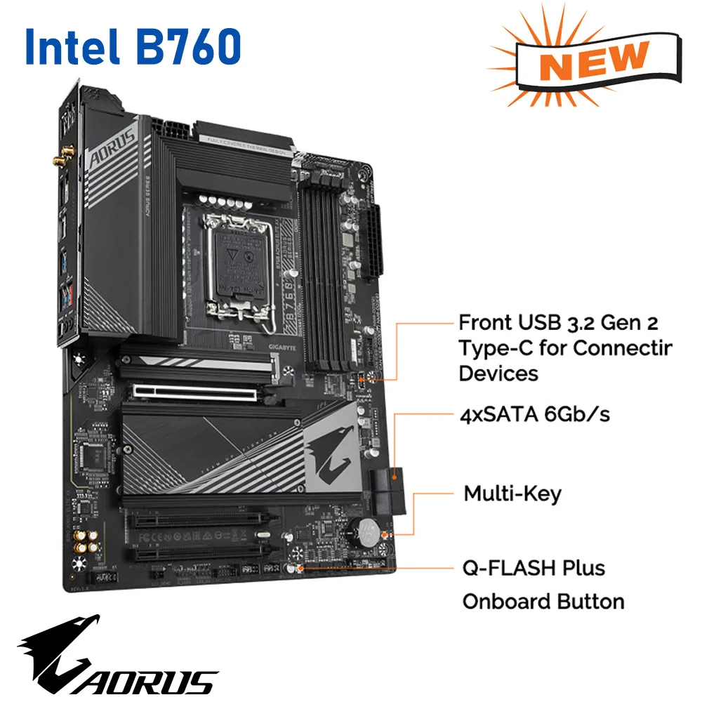 Comprar Gigabyte-zócalo LGA 1700, placa base B760 AORUS ELITE AX DDR5, compatible con Intel 12th 13th Gen, procesador LGA1700 ATX