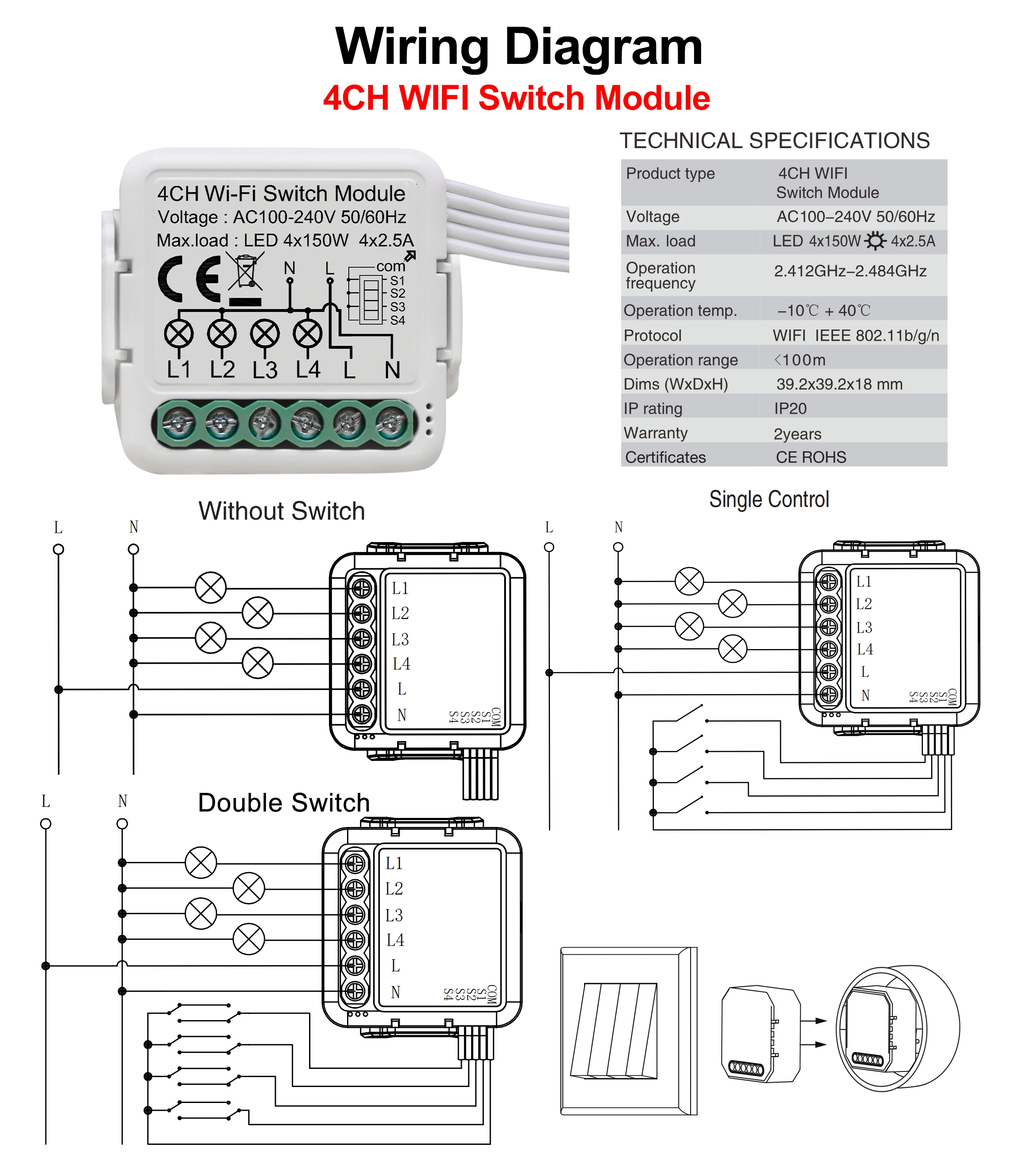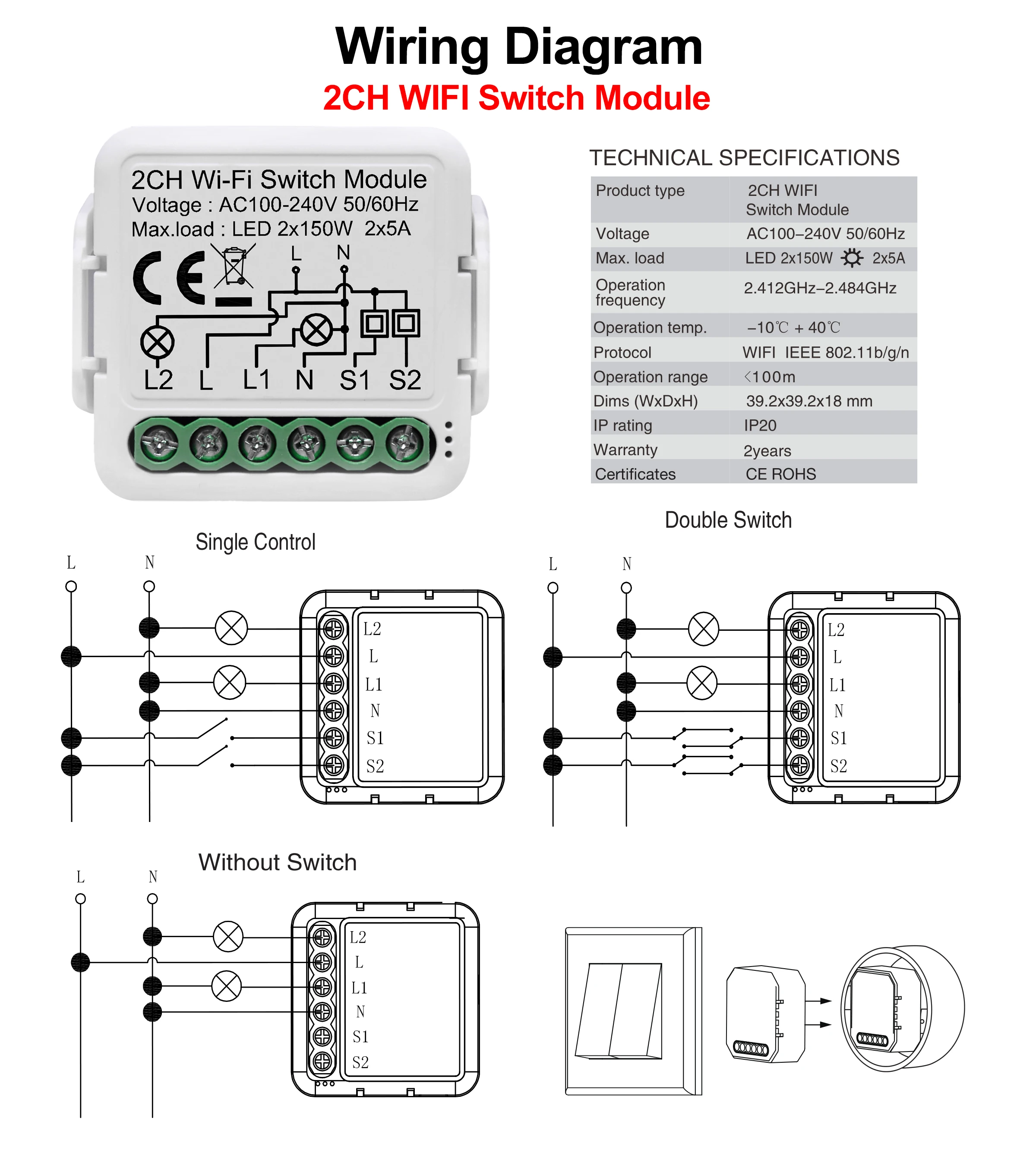 2. Este módulo de interruptor de luz inteligente no admite bombilla regulable, Bombilla inteligente y luces de tira.