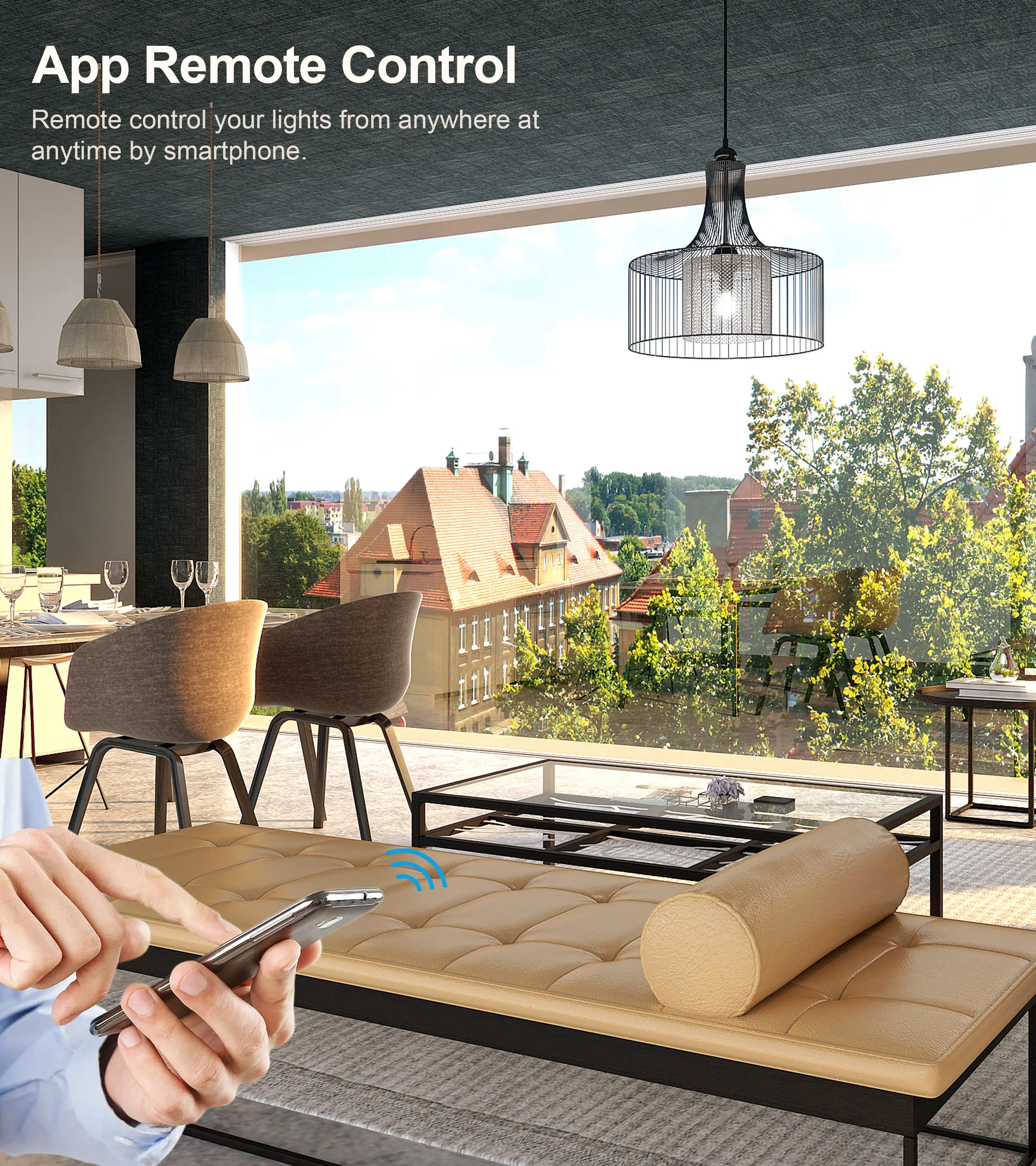 • Compatibilidad de Alexa y Google Home :Compatible con Alexa y Google Home, puede controlar sus luces con su voz, haciéndolo manos libres y sin esfuerzo.