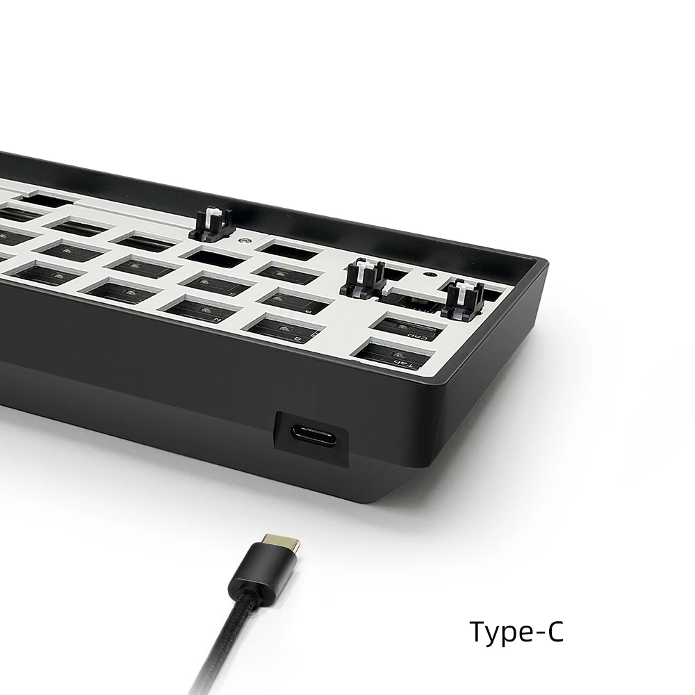 Kit de base: caja de plástico + pies + estabilizadores + Hotswap tipo C PCB + placa + cable + Herramienta de extracción + módulo espacial