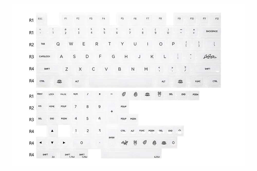 Comprar GKs MDA Silk Screen Tech Keycap Set, ABS transparente grueso para teclado gh60 poker 87 tkl 104 ansi xd64 bm60 xd68 xd84 BM87 BM65