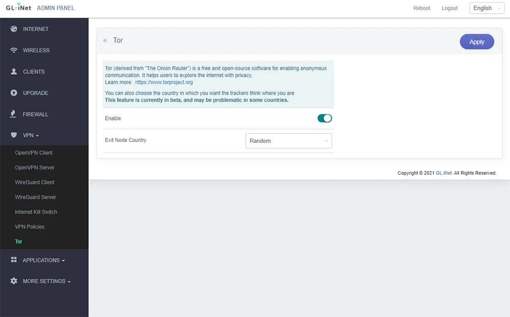 Al igual que otros productos GL.iNet, puede utilizar cuatro métodos para acceder a Internet con Opal, incluidos Cable, repetidor, módem USB 3G/4G y conexión. Proporciona visibilidad en la seguridad de la red al tiempo que permite múltiples accesos y controles. Simplemente cree una red Wi-Fi personal y compártelo con sus amigos, familiares o colegas durante su viaje. Además de su potente hardware de soporte, Opal le proporciona una red segura con OpenVPN y WireGuard®