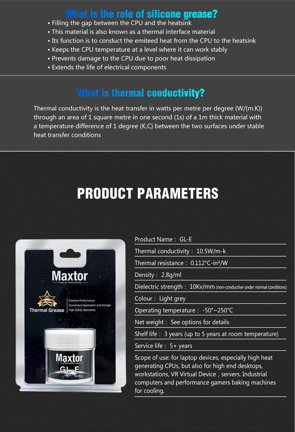 GLE Maxtor-compuesto térmico conductor, pasta de Grasa de silicona, disipador de calor para CPU, GPU, Chipset, Notebook, Coo de refrigeración, 10,5 W/mk