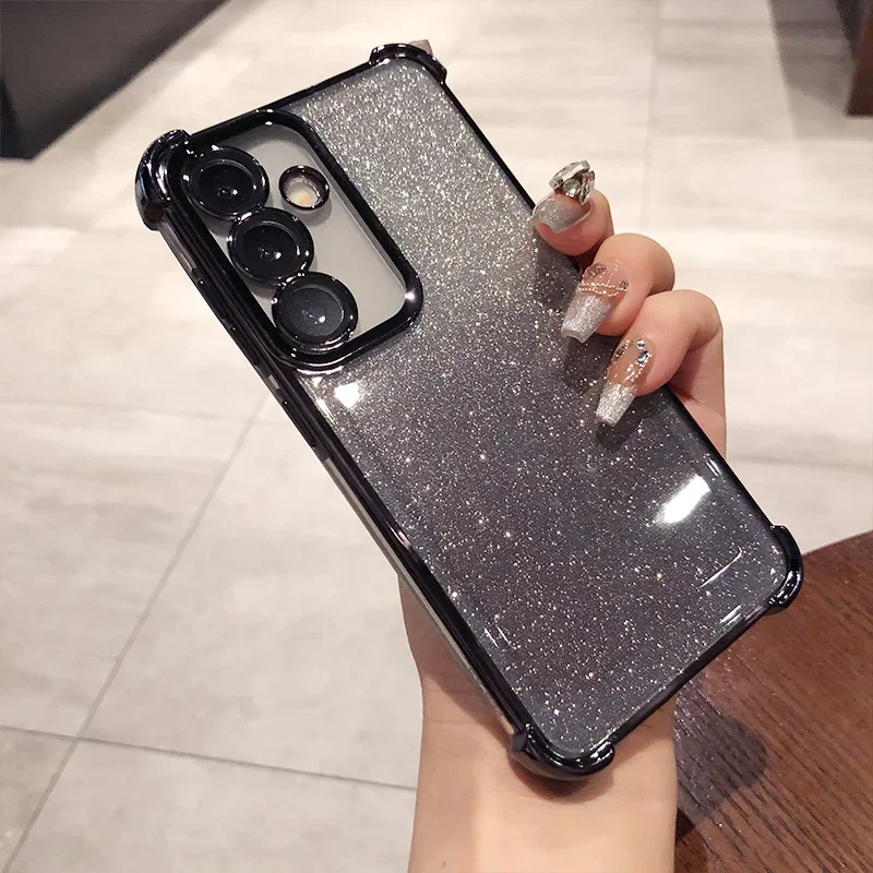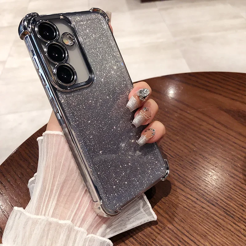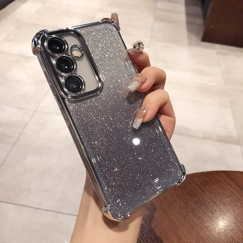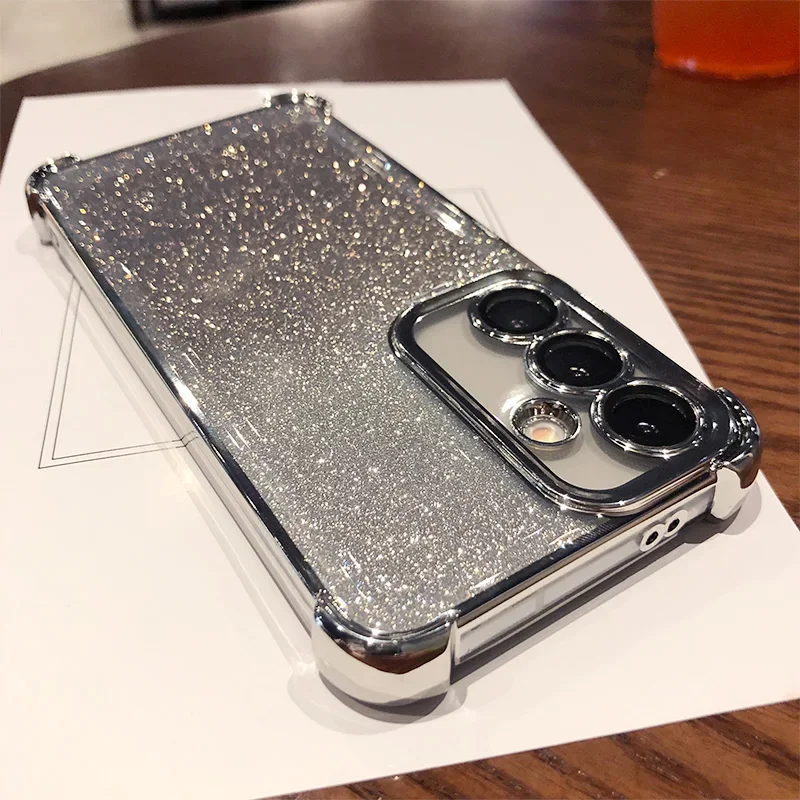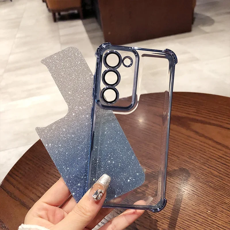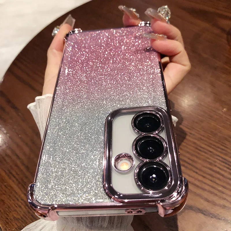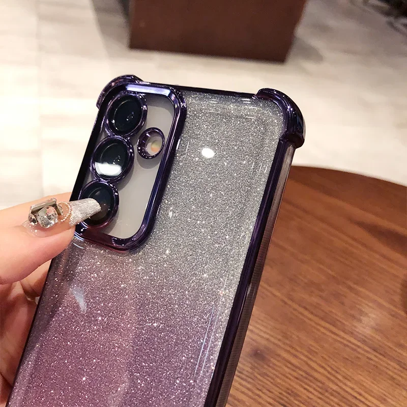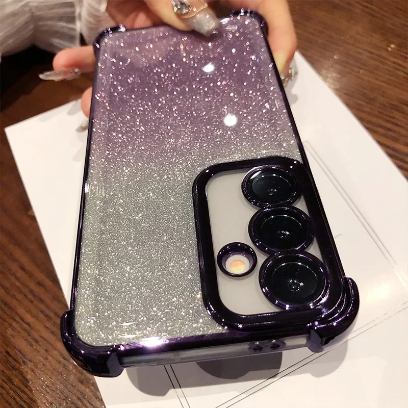 Glitter para Samsung S25 funda chapada para Galaxy S25 Ultra S24 FE S23 Plus A55 A54 A53 cubierta protectora de película de lente transparente suave