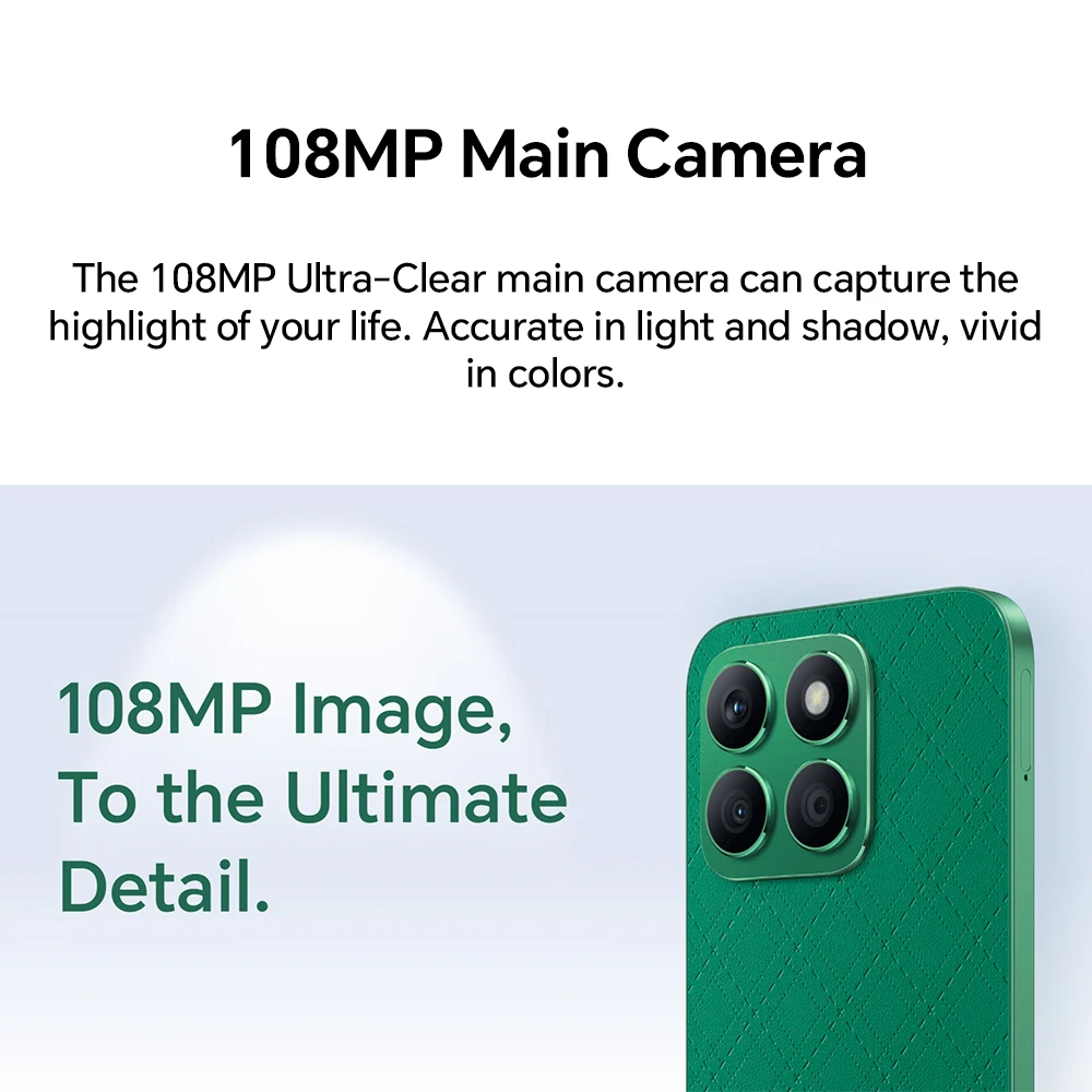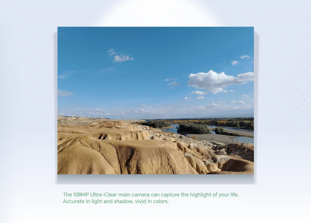 La cámara principal Ultra-Clear de 108MP puede capturar lo más destacado de su vida. Preciso en luz y sombra, vivos en colores.