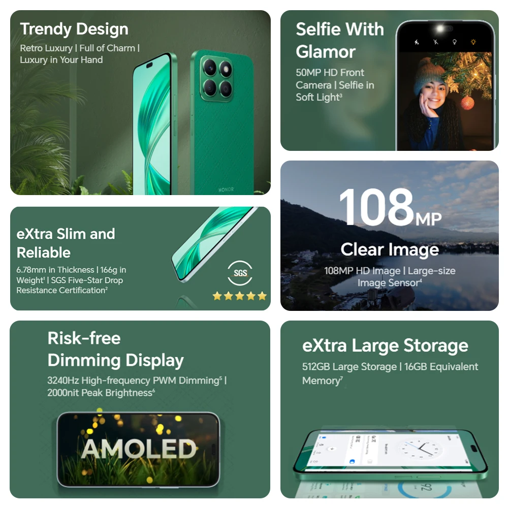 108MP y 50MP Fotografía de retratos ∣ Pantalla AMOLED de atenuación sin riesgo