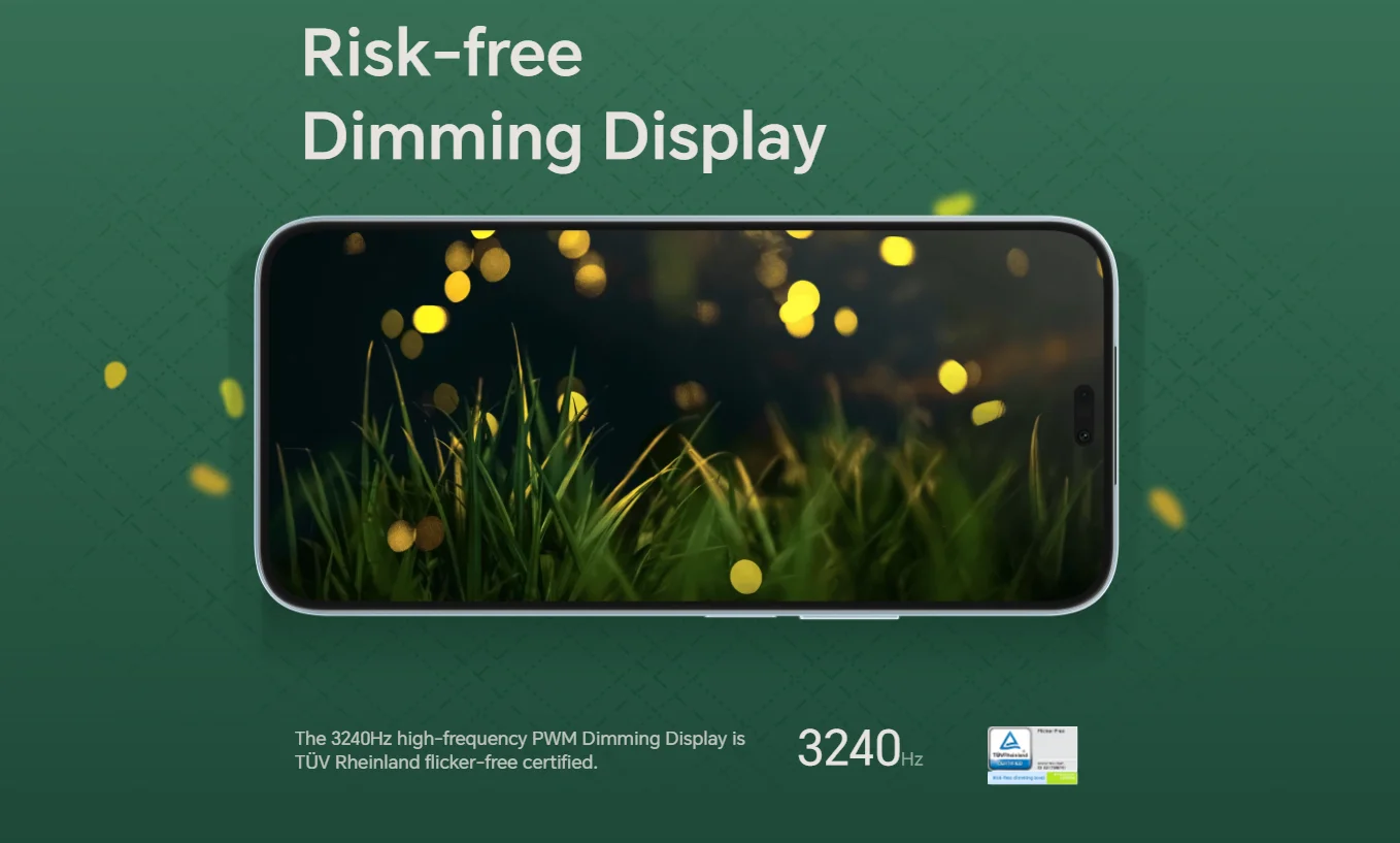 5. La tecnología de atenuación PWM de frecuencia ultraalta de 3240Hz de HONOR X8b está certificada por TÜV Rheinland Flicker-Free y logra un nivel de atenuación sin riesgos. El estándar de prueba para la certificación TÜV Rheinland Flicker-free sigue la correlación entre el nivel de riesgo de parpadeo y la frecuencia de parpadeo en el estándar IEEE Std 1789-2015, que define el nivel sin parpadeo como cuando la frecuencia de atenuación es superior a 3125Hz. El teléfono no es equipo médico y no está disponible para tratamiento.