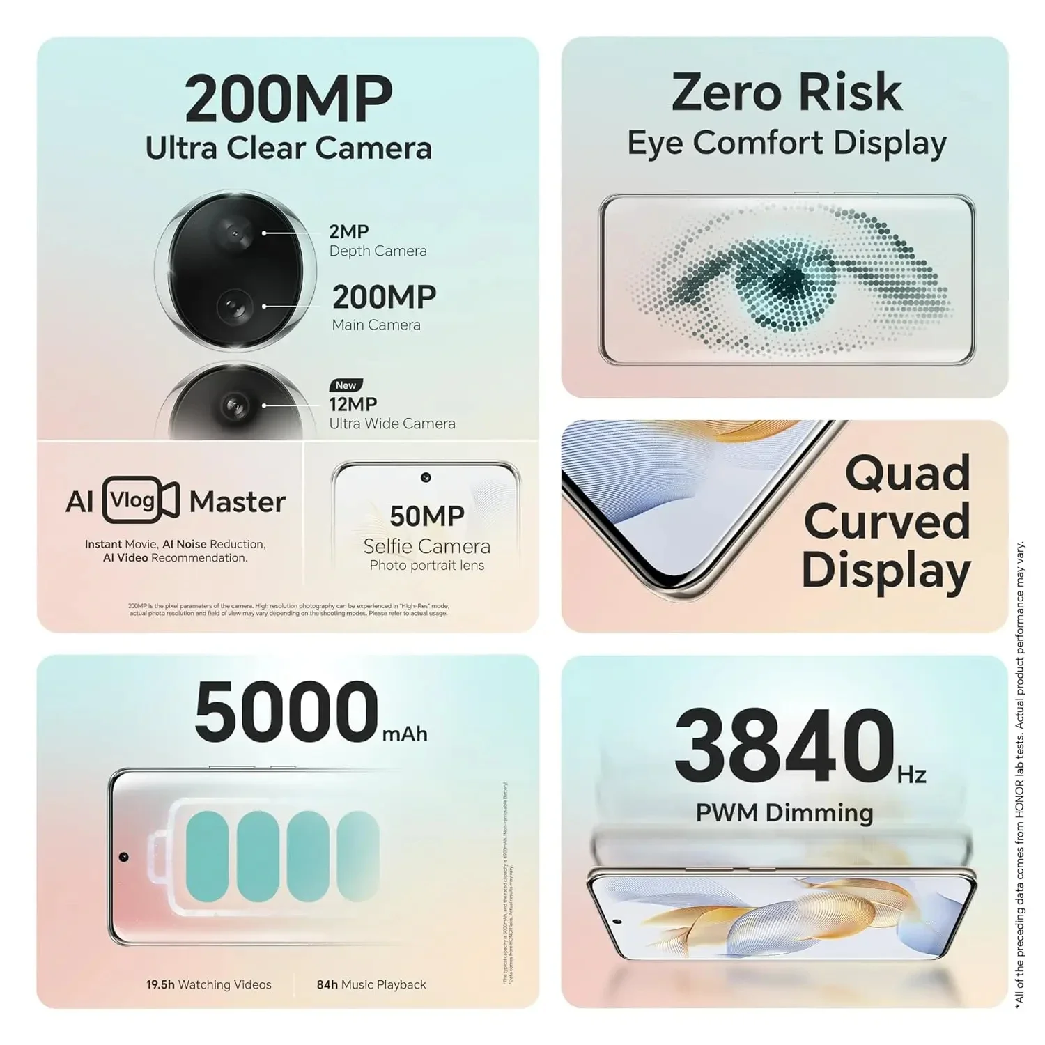 Comprar Global HONOR-90,5G Smartphone Android 6,7 pulgadas 256GB/512GB ROM 200MP 5000mAh teléfono móvil NFC Google Play Store, teléfonos móviles
