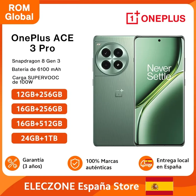 Comprar Global ROM OnePlus ACE 3 Pro 5G Smartphone Snapdragon 8 Gen 3 100W SUPERVOOC Charge 6100mAh Batería 50MP Cámara trasera Pantalla AMOLED de 6.78 pulgadas