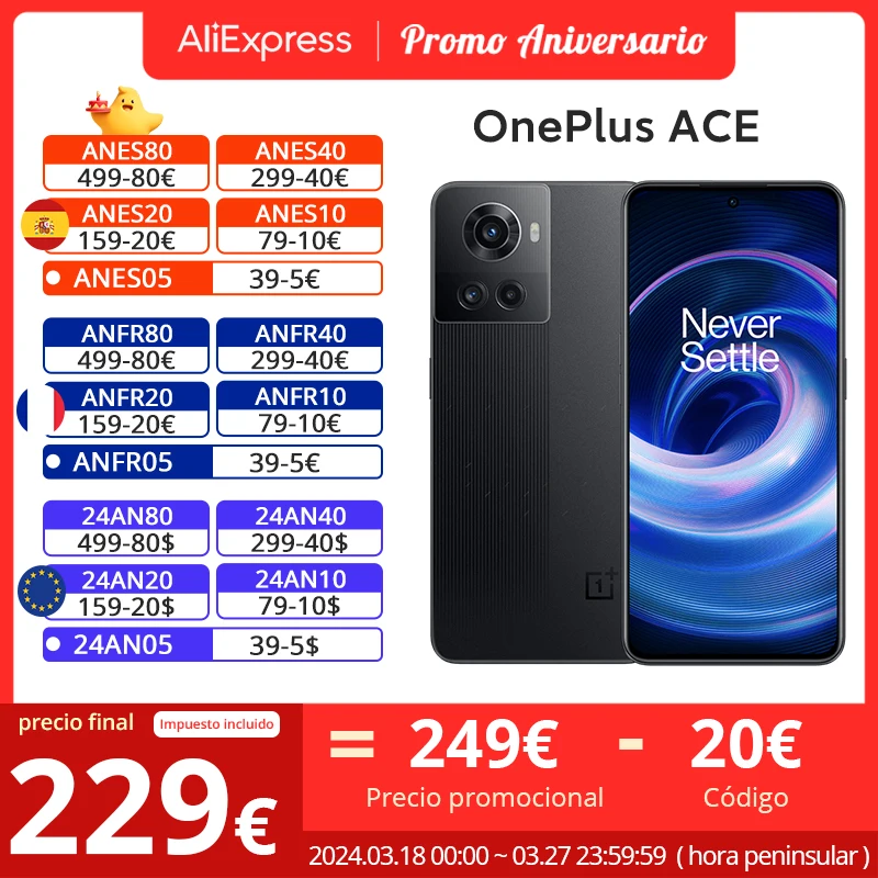 Comprar Global ROM OnePlus ACE OnePlus 10R 5G Smartphone MTK Dimensity 8100-MAX 120Hz OLED 150W SUPERVOOC carga 4500 mAh Batería NFC