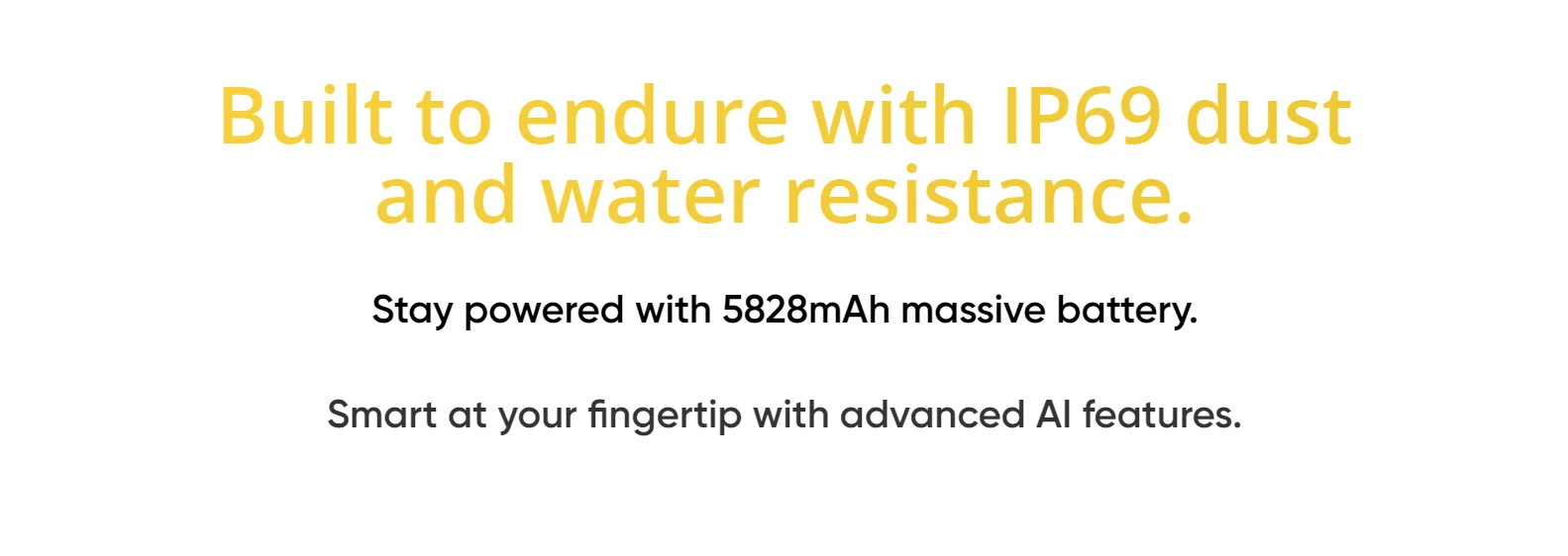 IP69 Resistencia al polvo y al agua | Batería masiva de 5828mAh