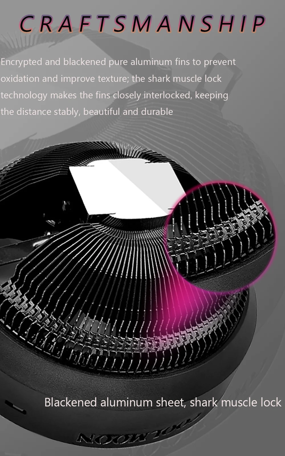 CPU colorida de apertura fina que cambia de color, base de aluminio puro, Plataforma universal, utilizada en CPU de menos de 80W, con mejor efecto de disipación de calor en i5.