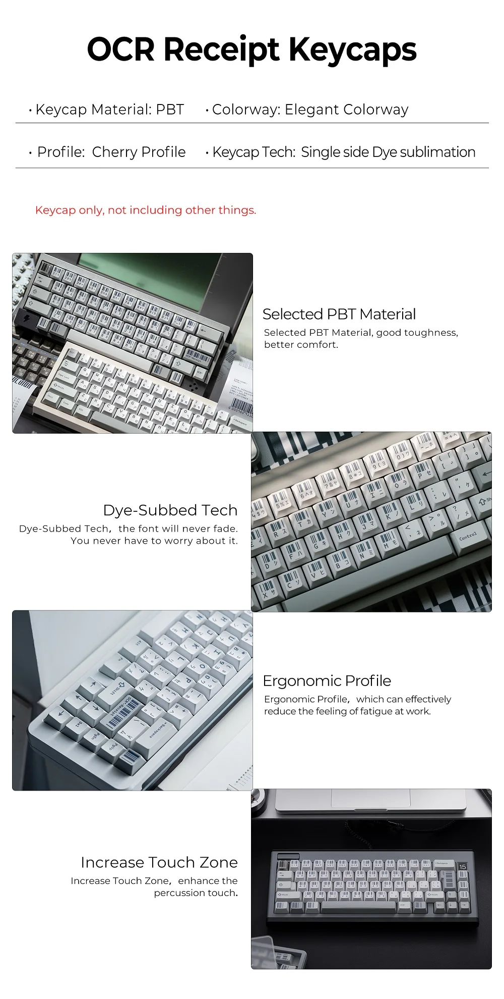 Comprar Glove x Domikey-Juego de teclas de subcama para teclado, teclas de recepción OCR, perfil de cereza, Dye, PBT grueso, BM60, CSTC75, BM65, BM68, XD60