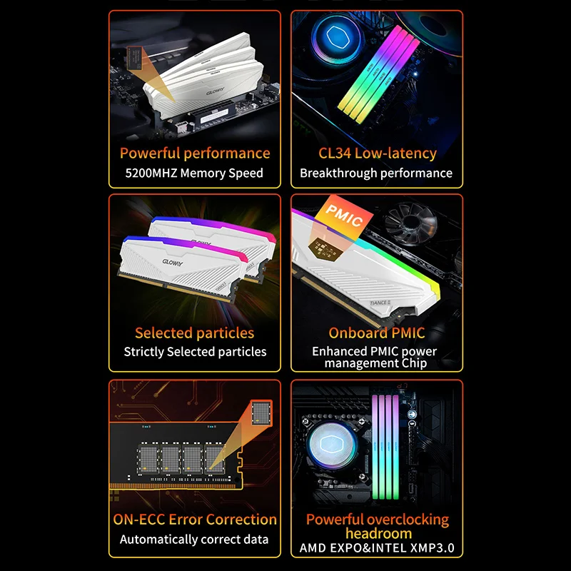 Comprar Gloway DDR5 32GB 16GB 6000MHz 5600MHz 5200MHz Memoria Ram 16GBx2 escritorios XMP3.0 Memoria Ram DDR5 RGB Computadora de comedor Diy