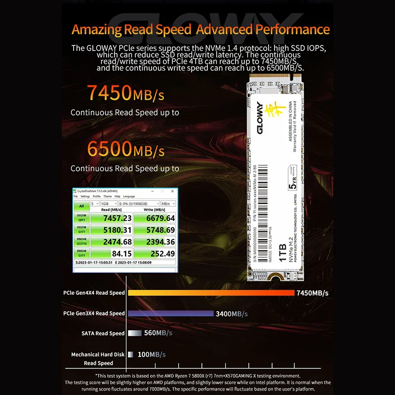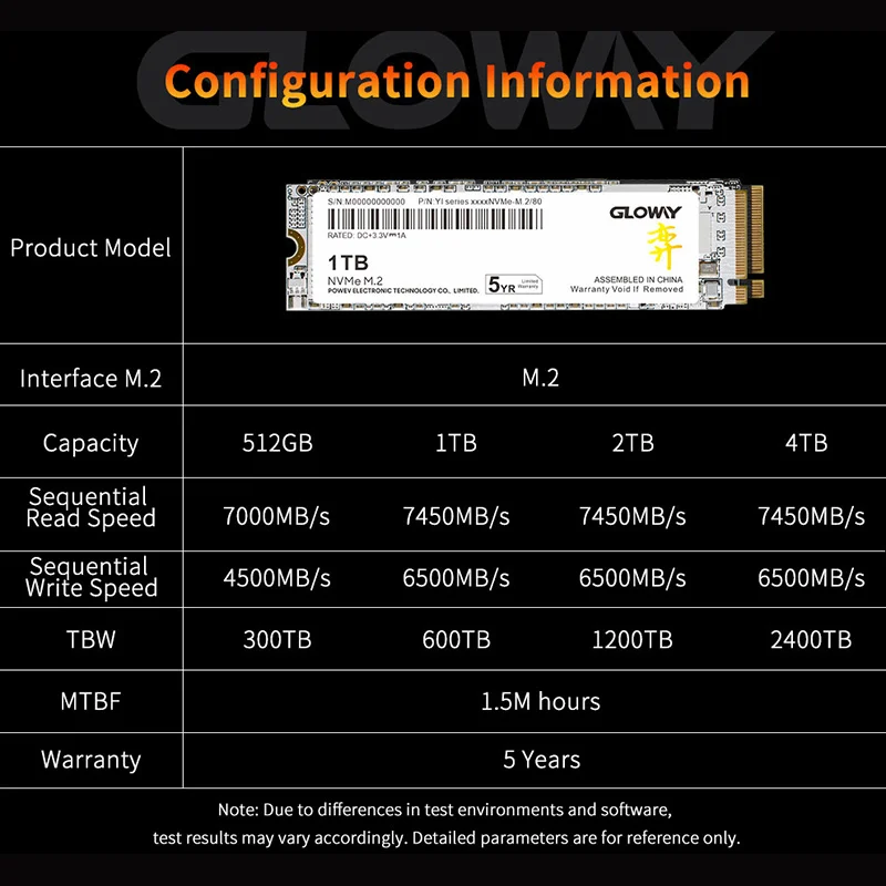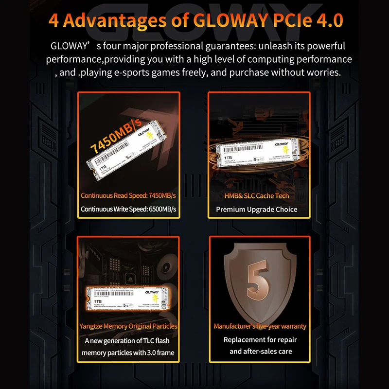 Comprar Gloway-disco duro interno para ordenador de escritorio y portátil, unidad de estado sólido M.2 2280 NVMe, 1TB, 512GB, 2TB, PCIe 4,0x4