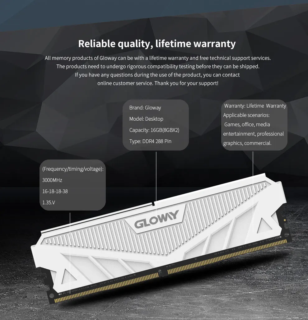 Gloway new arrival DDR4 8GB PC Desktop Memory RAM Memoria 8GB 16GB 2X8GB 3200MHZ DIMM with heatsink