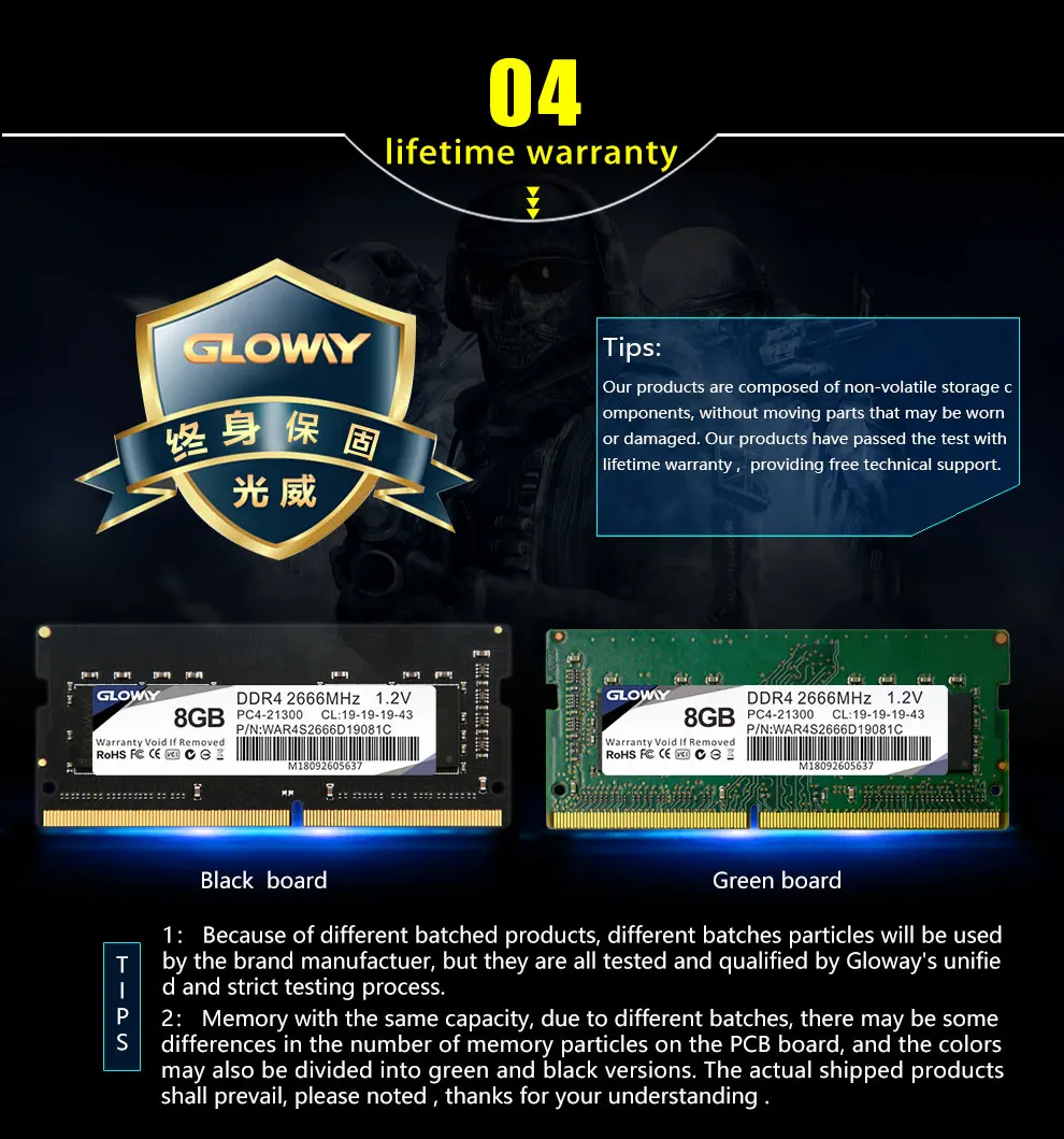 Comprar Gloway memoria ram ddr4 portátil 3200mhz 16gb 8GB 2666mhz SODIMM memoria ram ddr4 para Computador de escritorio Notebook