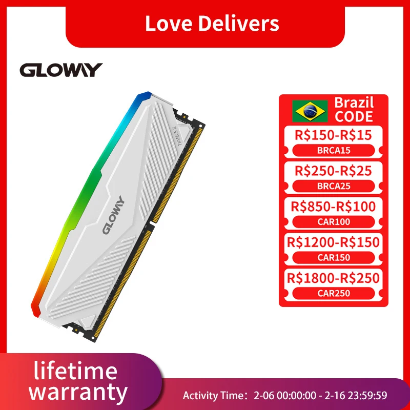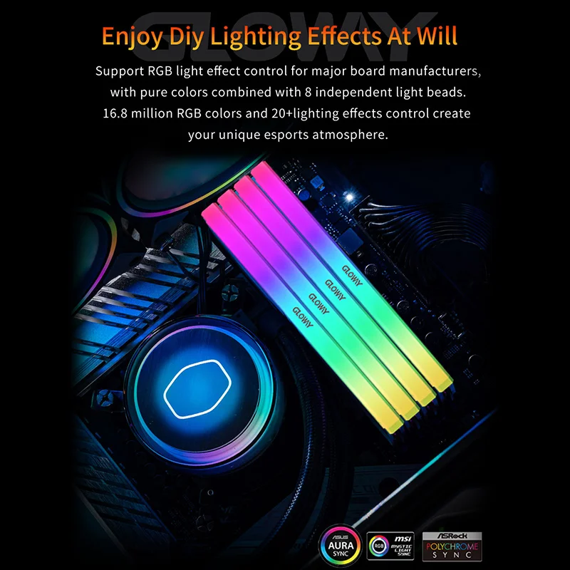 Comprar Gloway-memoria RAM RGB DDR4, 16GB, 32GB, 3600MHZ, 4000MHZ, DDR4, UDIMM, doble canal, Rams de alto rendimiento para juegos de escritorio