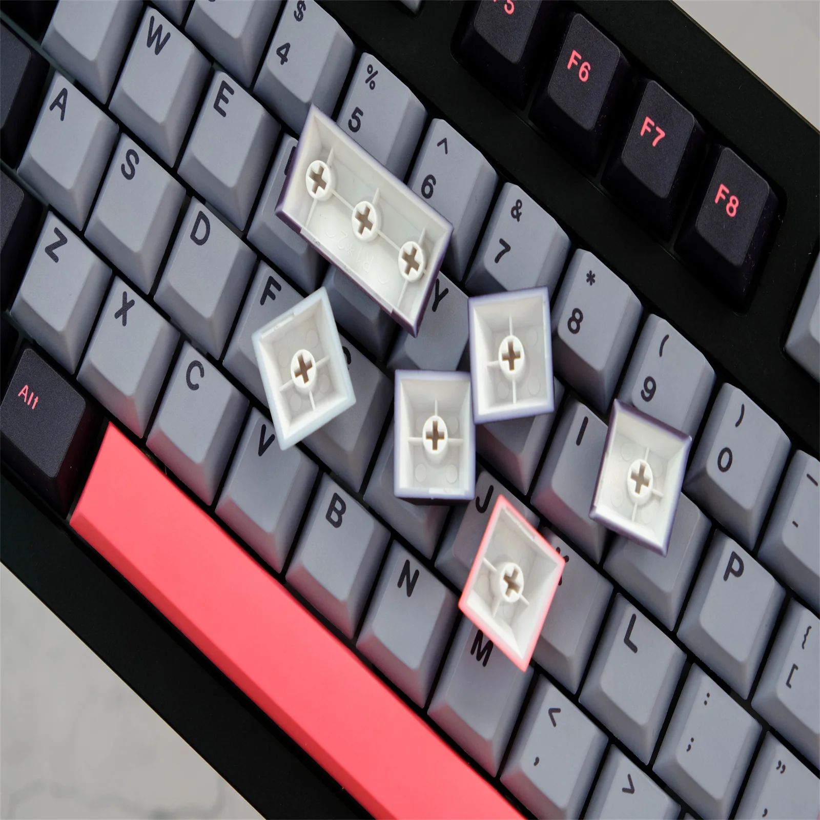 Ampliamente compatible: este juego completo de teclas personalizadas consta de 129 teclas para teclado mecánico con diseño de teclas 61/64/68/71/87/96/104 con interruptor MX, una buena opción para hacer su propio teclado mecánico.