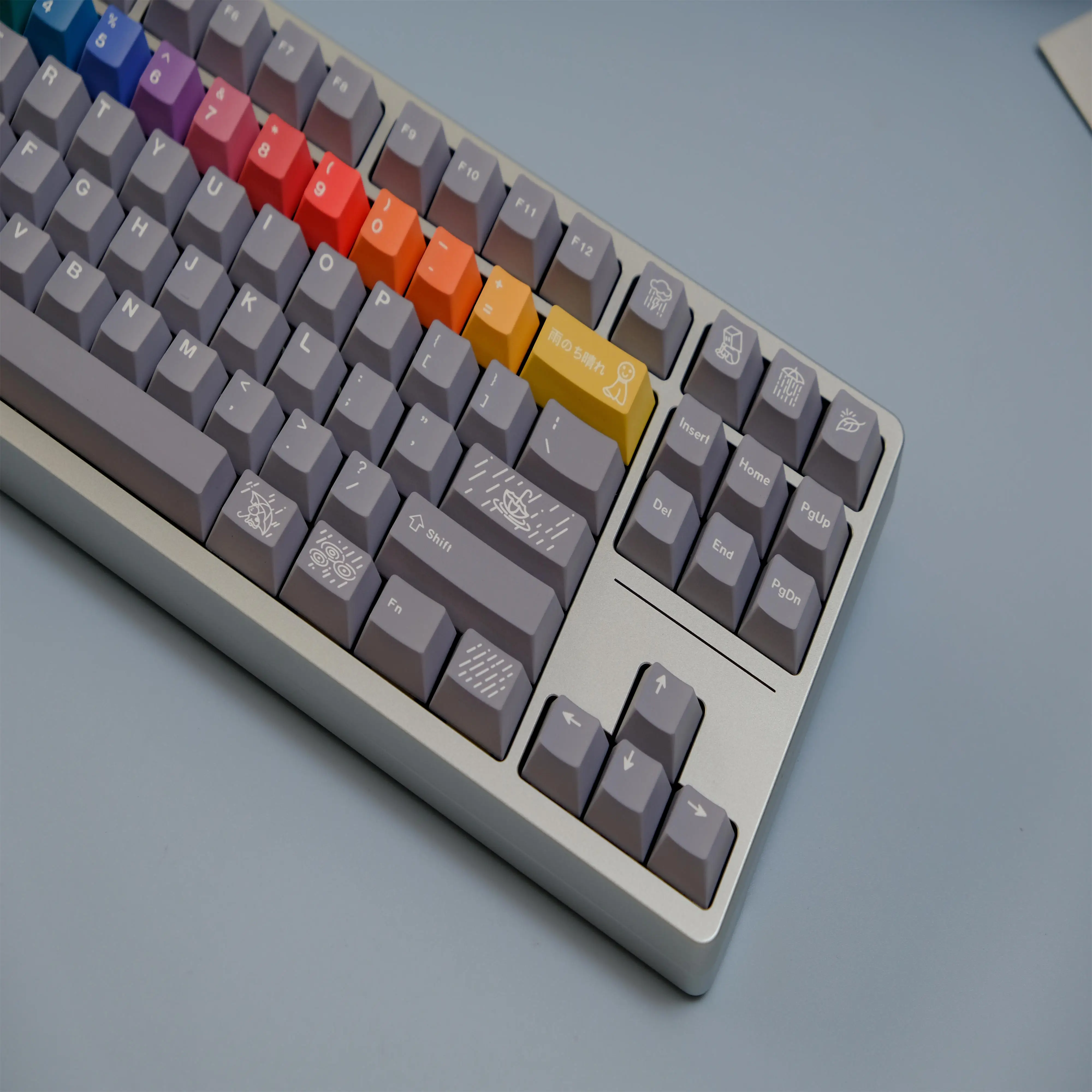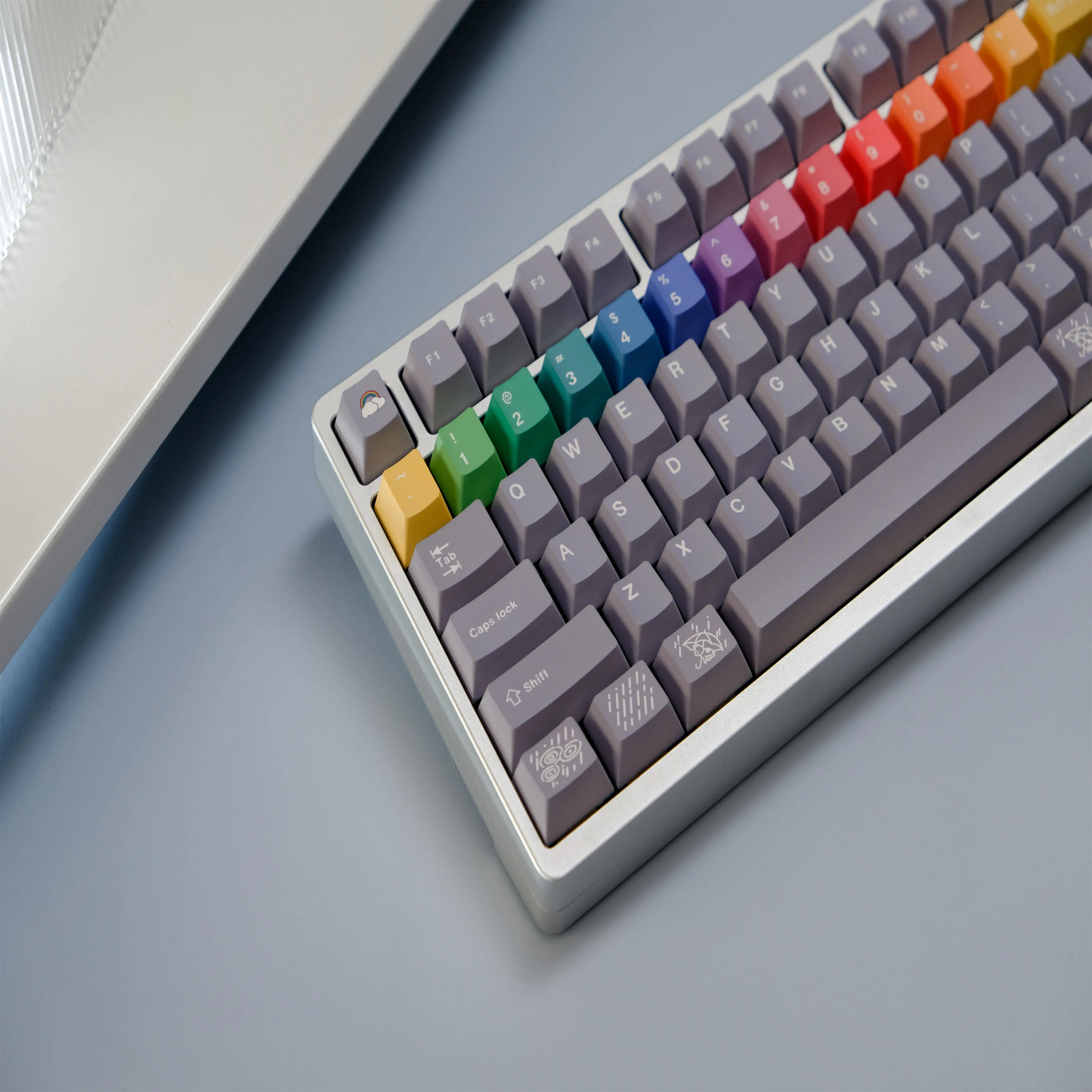Ampliamente compatible: este juego de teclas completamente personalizado consta de 147 teclas para teclado mecánico con diseño de teclas 61/64/68/71/75/84/87/96/98/104/108 con interruptor MX, una buena opción para que usted haga su mecánico. Teclado.