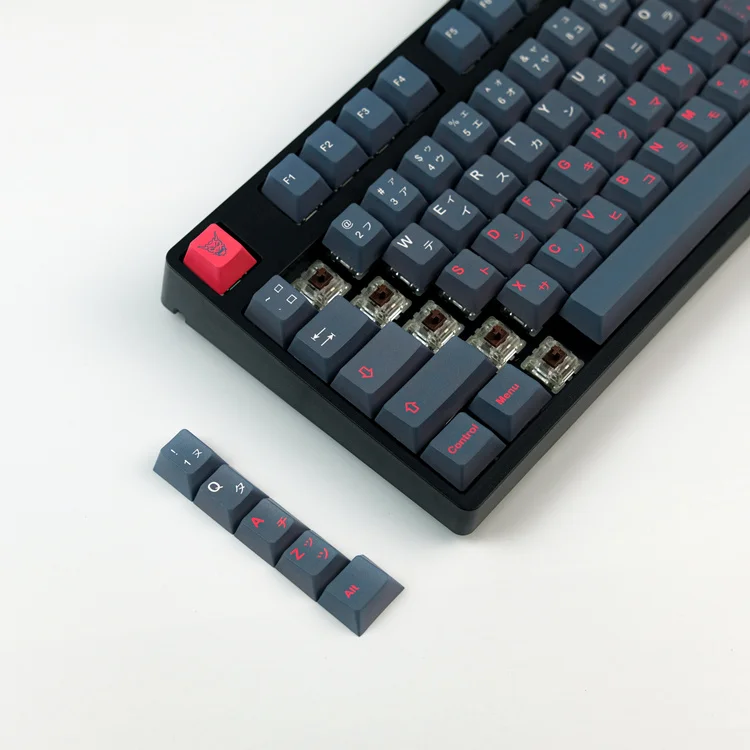 Total 135 teclas, incluye R1 1.75U, 2U Shift y suplemento 1.5U, es compatible con 61, 64, 68, 84, 87, 96, 980, 104, 108, etc. diseño de teclado mecánico con interruptores MX