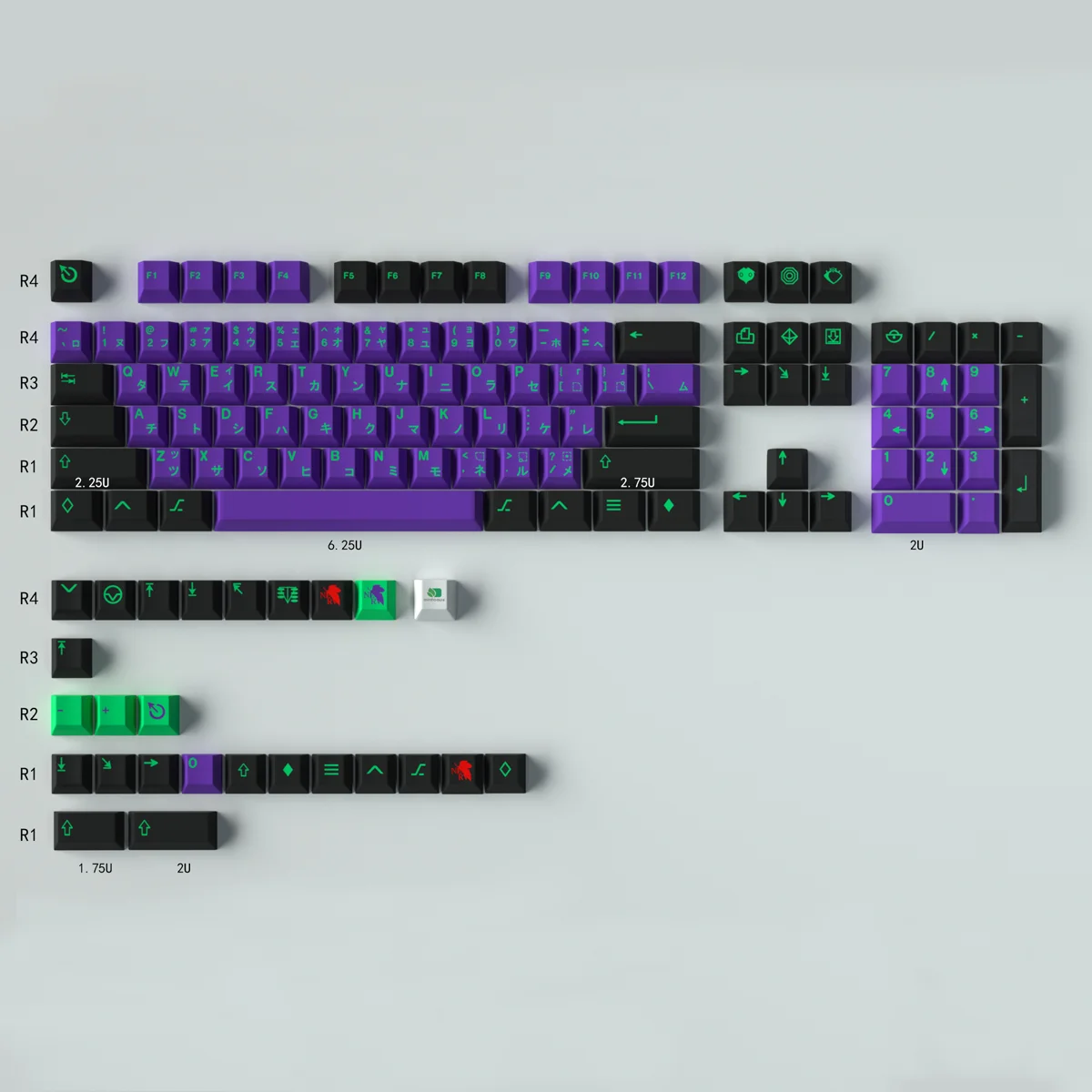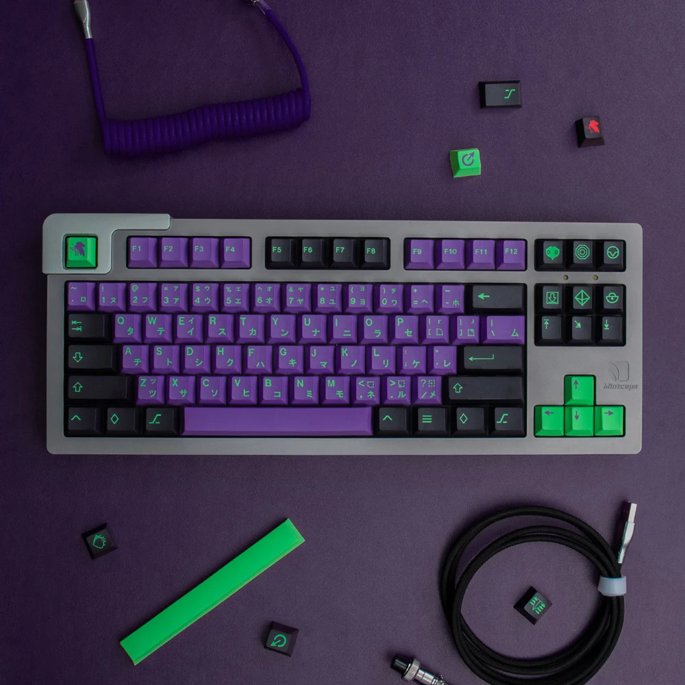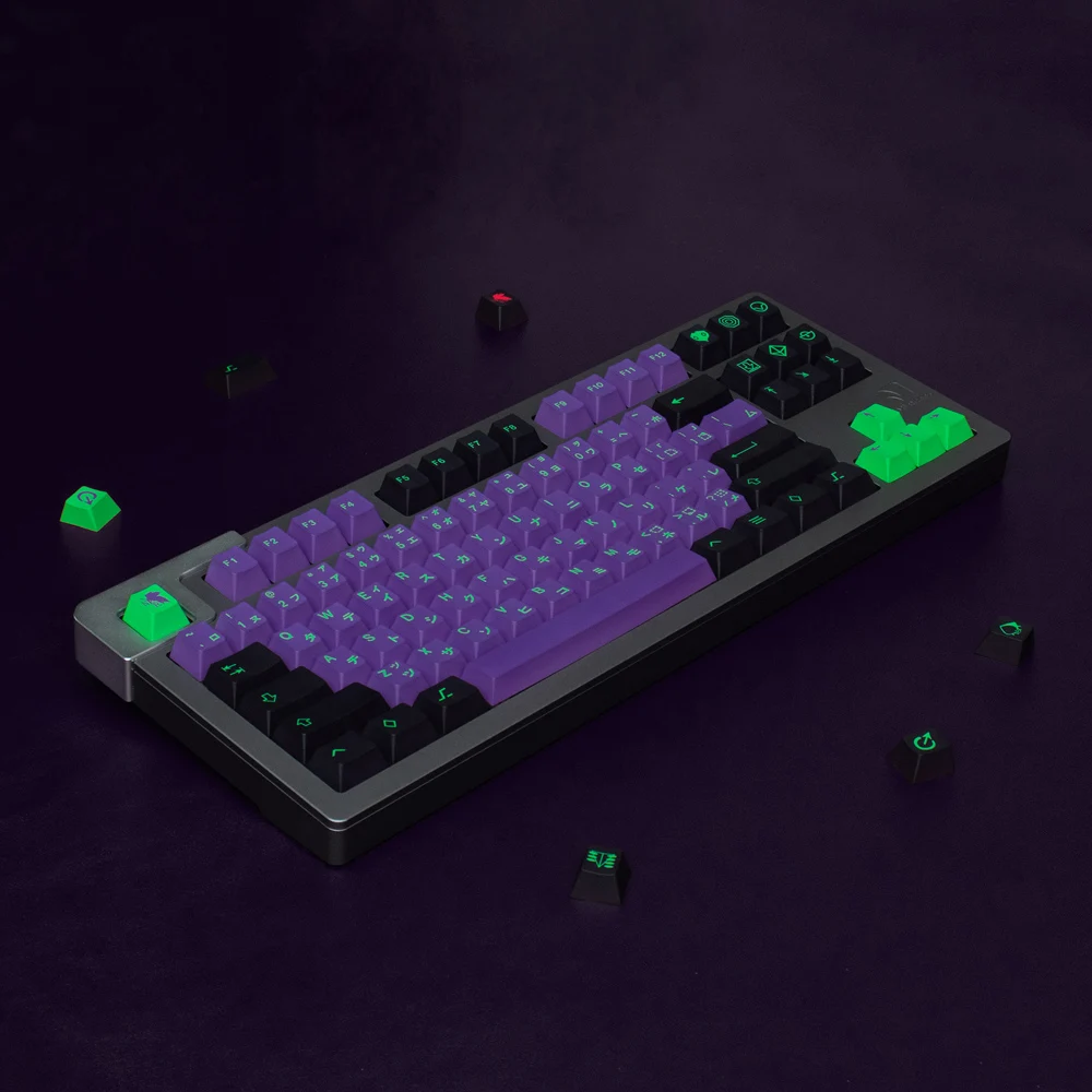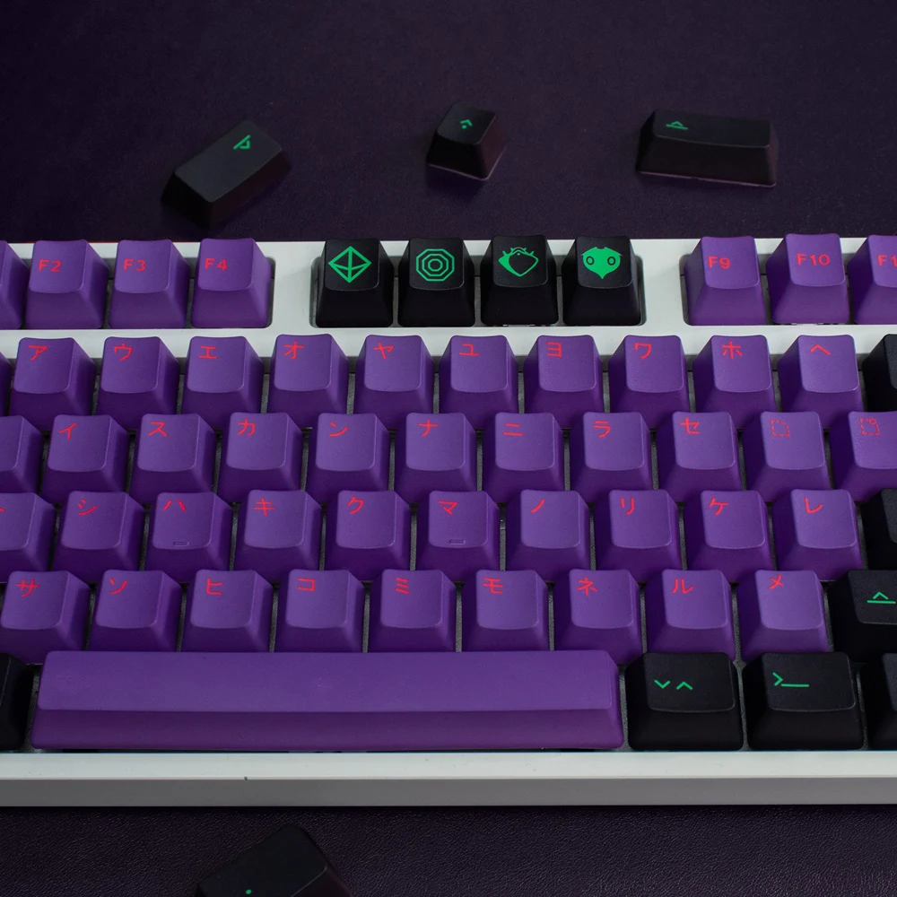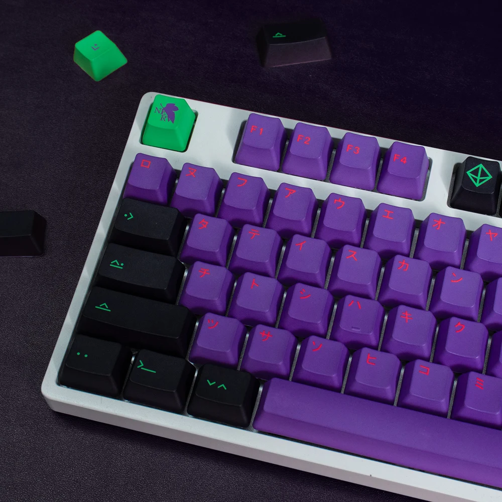 Teclas PBT de 130 teclas con perfil de cereza, teclas japonesas DYE-Sub para teclado mecánico, teclas personalizadas EVA-01 para GK61 Anne Pro