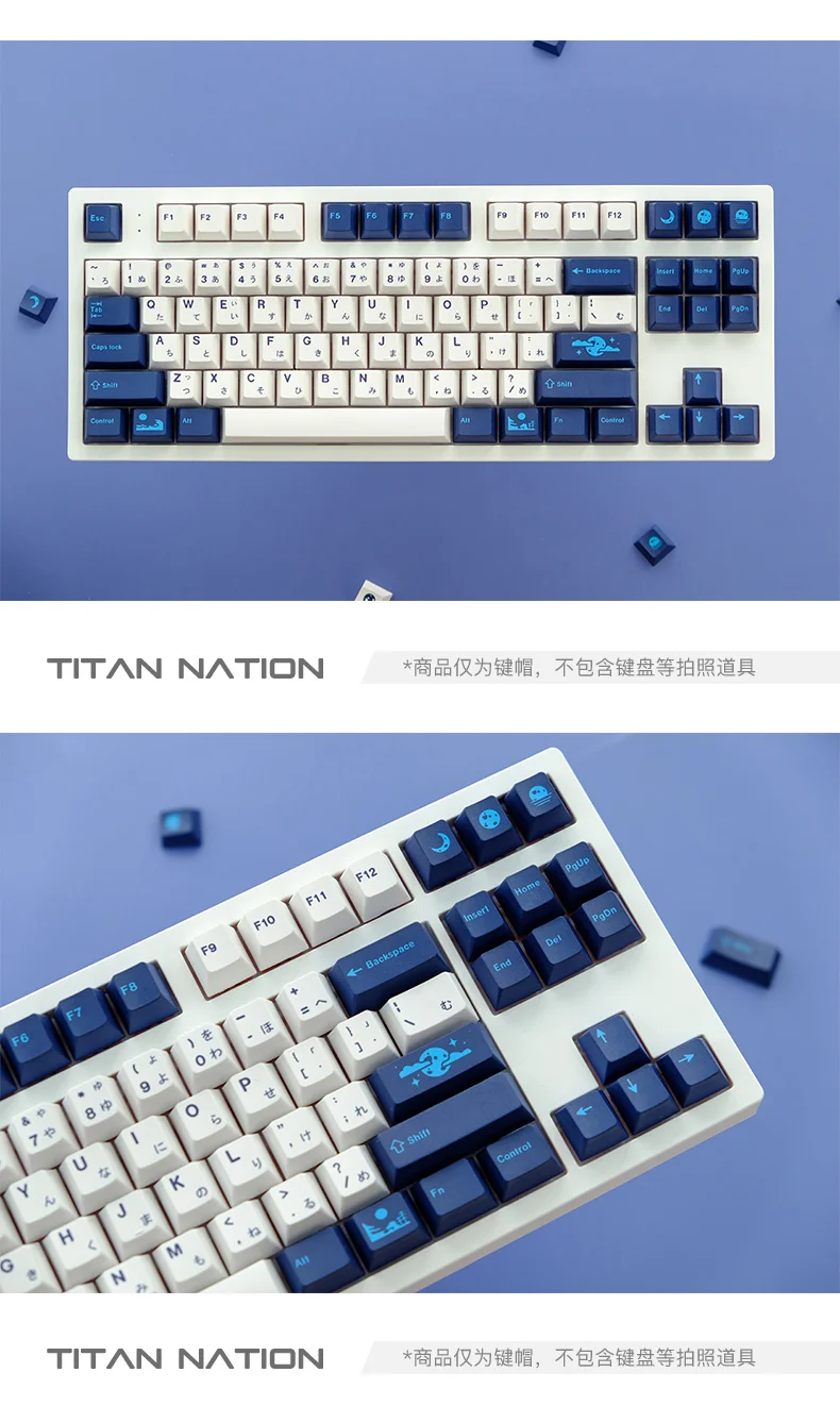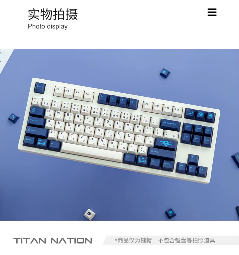 Total de 134 teclas, incluye 1.75U, cambio 2U, 1.5U ctrl alt y 6.25U, Barra espaciadora 7U, es compatible con61、63 64、65 67 68、80 84、87、96、980、104、108, Etc. Diseño de teclado mecánico con interruptores MX