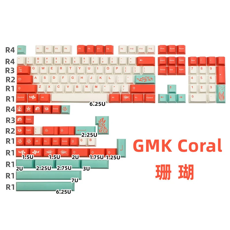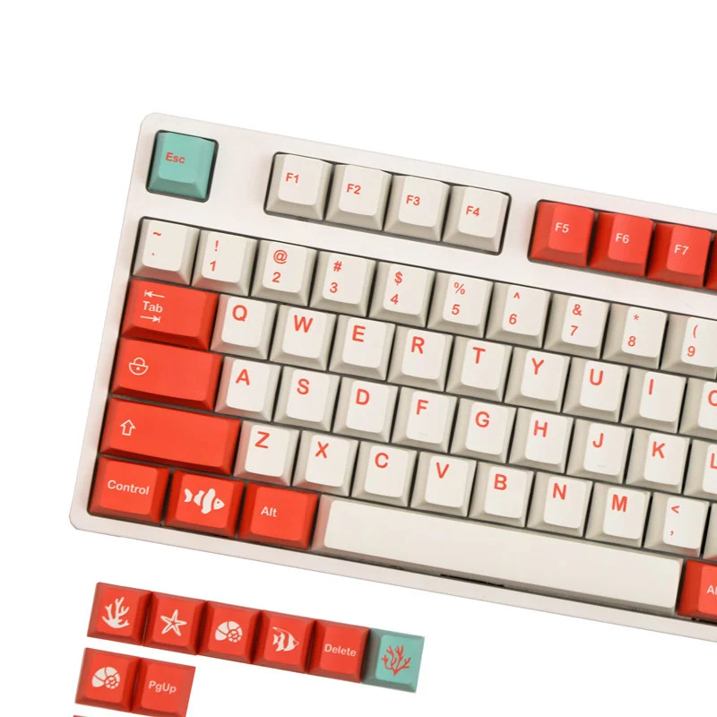 Comprar GMK-Juego de 140 teclas coralinas, teclas de subcama con tinte PBT, perfil de cereza, para Keychron Q1 Q2 K2 65% 75% Anne GH60 GK64 Poker